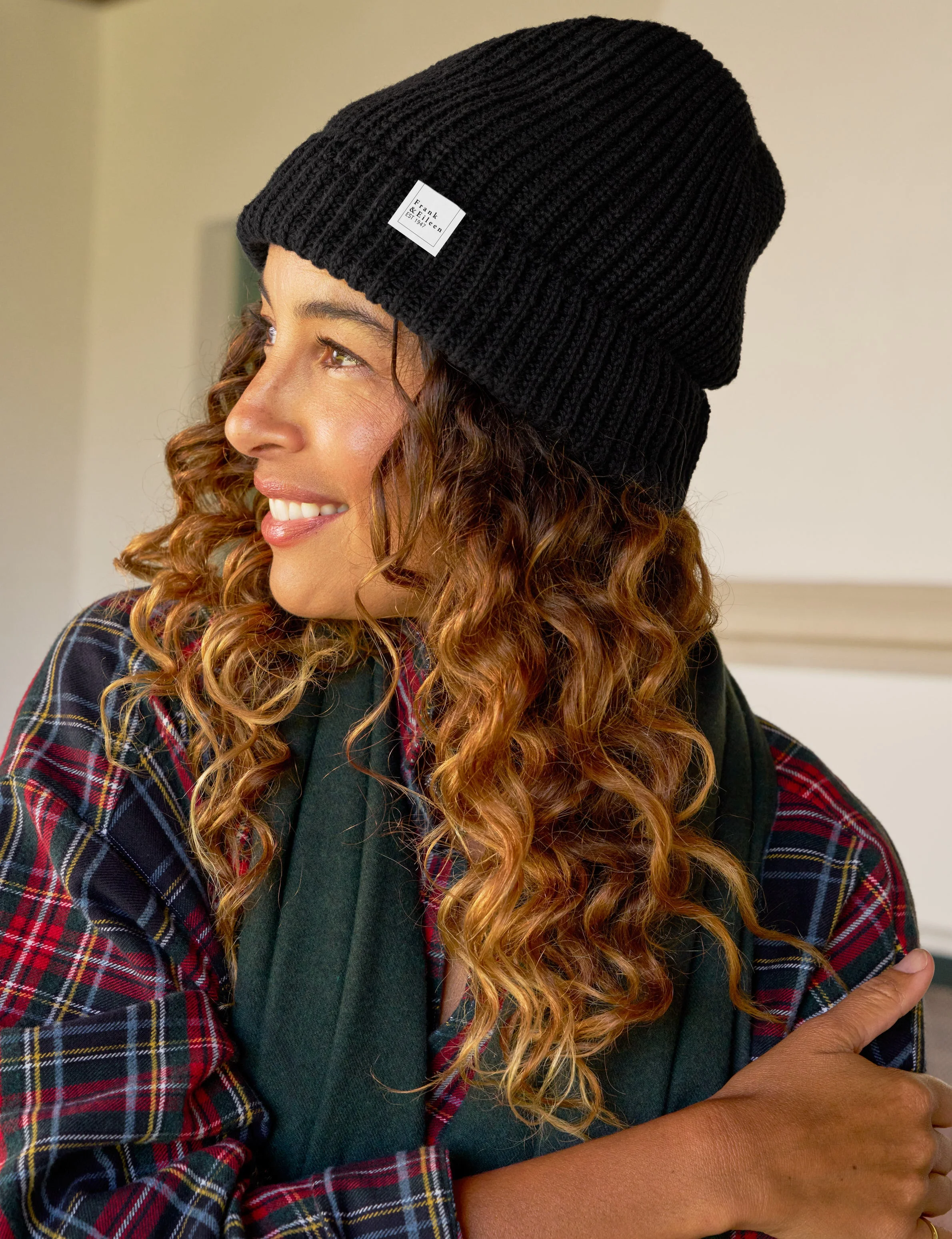 A soft, incredibly comfy (and cute!) beanie is a cozy season essential. Bonnie’s ribbed texture in Pure Italian Cotton is breathable and warm, without feeling too hot. You’ll reach for this utterly perfect beanie daily…we promise. - Ribbed knit pattern - Versatile fold-over cuff adds warmth and ensures a snug fit, or wear it unfolded for that slouchy, effortless look - Crafted from the same cozy cotton as our coveted Montecito Collection, it's a perfect way to add texture to your winter wardrobe - Style Code: BEANIE01-BLKK FABRIC + CARE - A sweater yarn that retains all of its quality, color and shape no matter how many times you wash and wear it. - 100% Cotton - Our cotton is spun in Egypt, then brought to life in Italy—dyed, twisted, and treated into premium yarn—before being crafted into garments in Portugal. - Machine wash cold on a delicate cycle with like colors. Lay flat to dry or tumble dry low and remove promptly. Do not bleach. - Learn more in our Fabric Guide.