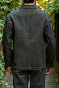 A newer style for 3sixteen, the Work Blazer is a casual approach to tailoring, incorporating atypical workwear details. Cut from a heavyweight cotton twill, the Work Blazer has a low button stance, wider lapels, front patch pockets, and a relaxed fit. For a comfortable, casual suit, pair the Work Blazer with the Work Pants. Details Features - Low button profile - Wider lapels - Heavyweight twill fabric - Garment dyed - Flat felled seam construction What it's made out of - 100% cotton Where it's Made - Portugal Fit & Measurement Fit - Relaxed fit - We recommend taking your normal jacket size - Dane is 5'8" 140lbs and wears a smallMeasurements - These measurements are for the units we have in stock - Please note, if we have multiples of the same size, these measurements are for one unit and there may be variations between the same size - To see how we measure click here - Please contact us if there are any questions about the measurements!