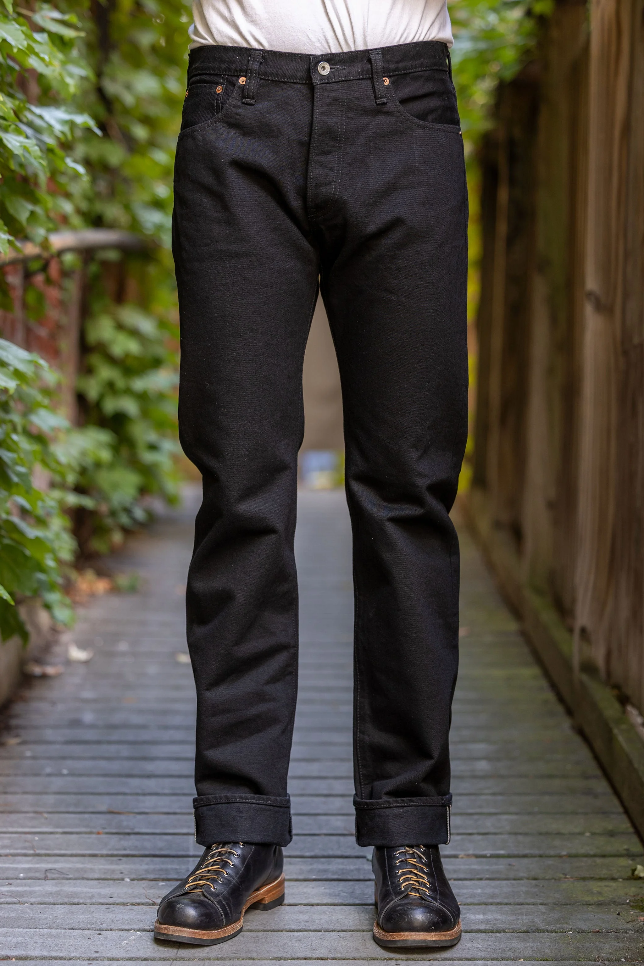 IH-634S-142BB 14OZ SELVEDGE DENIM STRAIGHT CUT JEANS - BLACK/BLACK