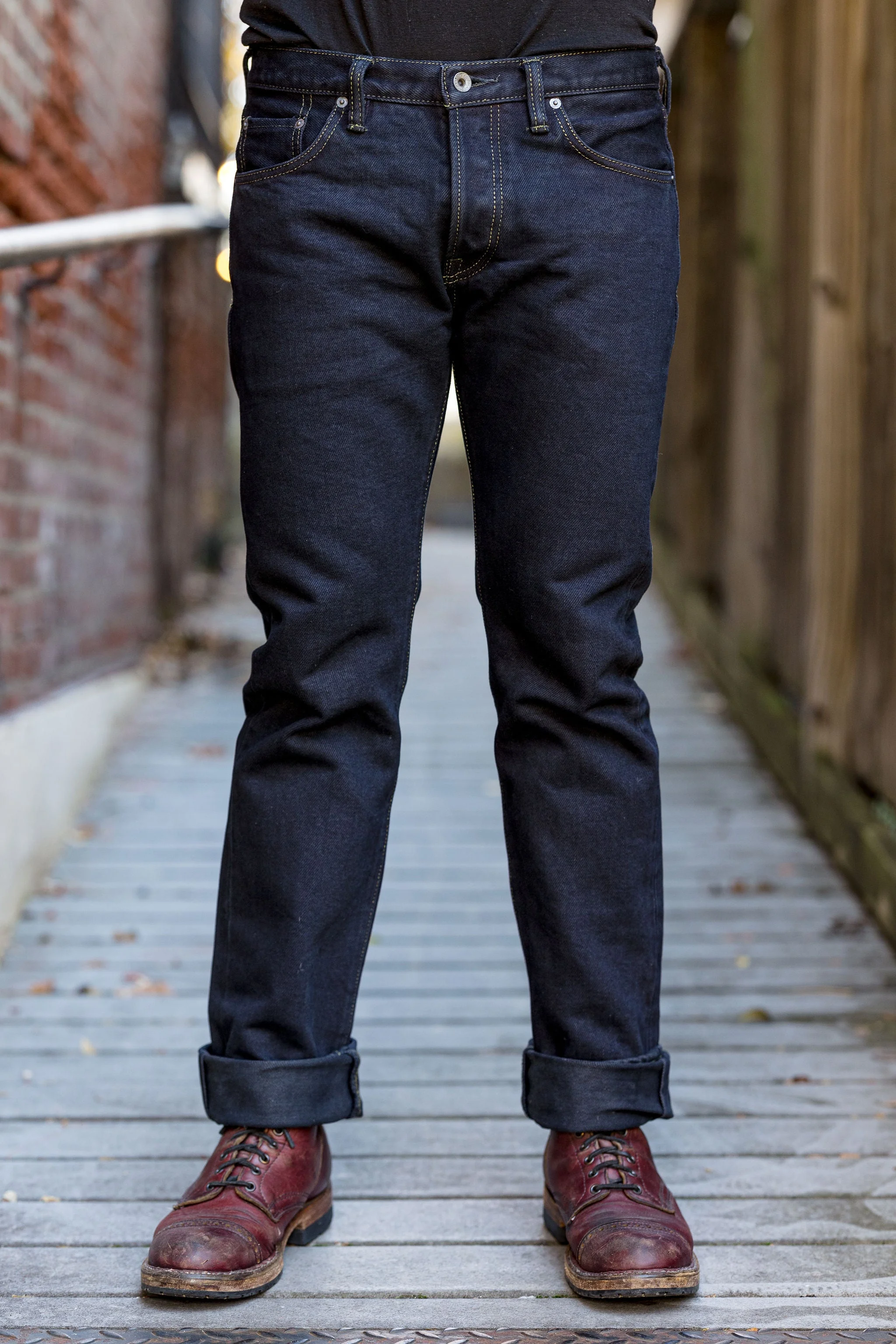 The Iron Heart IH-777S-21od 21oz jean comes in Iron Heart's Super Slim Tapered cut and features their legendary 21 oz. fabric, which features a double twisted weft yarn. This version features indigo denim that has been overdyed with black sulphur adding additional depth and character to the denim. Over time, the black sulphur dye will fade to reveal more of the indigo beneath. As for the fit, this jean is a slimmer cut to be sure, but in all honesty, the IH-777S-21od 21oz is just a great modern taper. The slightly lower rise, slimmer profile and lighter, & 21 oz. fabric make this a great option for guys wanting the Iron Heart quality and craftsmanship, but prefer more modern fit. Details Features - 21oz rope dyed indigo warp, natural weft Japanese selvedge denim - After construction, garment overdyed with black sulphur dye - Woven with a double twisted weft yarn - Lined rear pockets - Button fly and hidden rivets - Belt loops are sewn into the waistband - Poly/cotton constructional stitching - Selvedge side seams and fly construction - Overdyed - the overdyeing process takes out all the shrinkage What it's made out of - 21oz rope dyed indigo warp, natural weft Japanese selvedge denim - 100% cotton Where it's Made - Japan Care - Put good wear before washing. Use your favorite raw denim washing method. Hang Dry. - For more care information: click here Fit & Measurement Fit - Slim taper fit - Medium-low rise, taper below the knee - The waist will stretch approximately one inch with wear - Andrew is 5’10” 175lbs and is wearing a 34Measurements