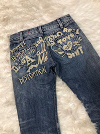 Skulls - RNA inc slang distressed emrodery denim
