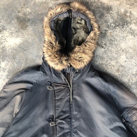 Vintage - Avirex faded Flight Bomber jacket with faux fur hood