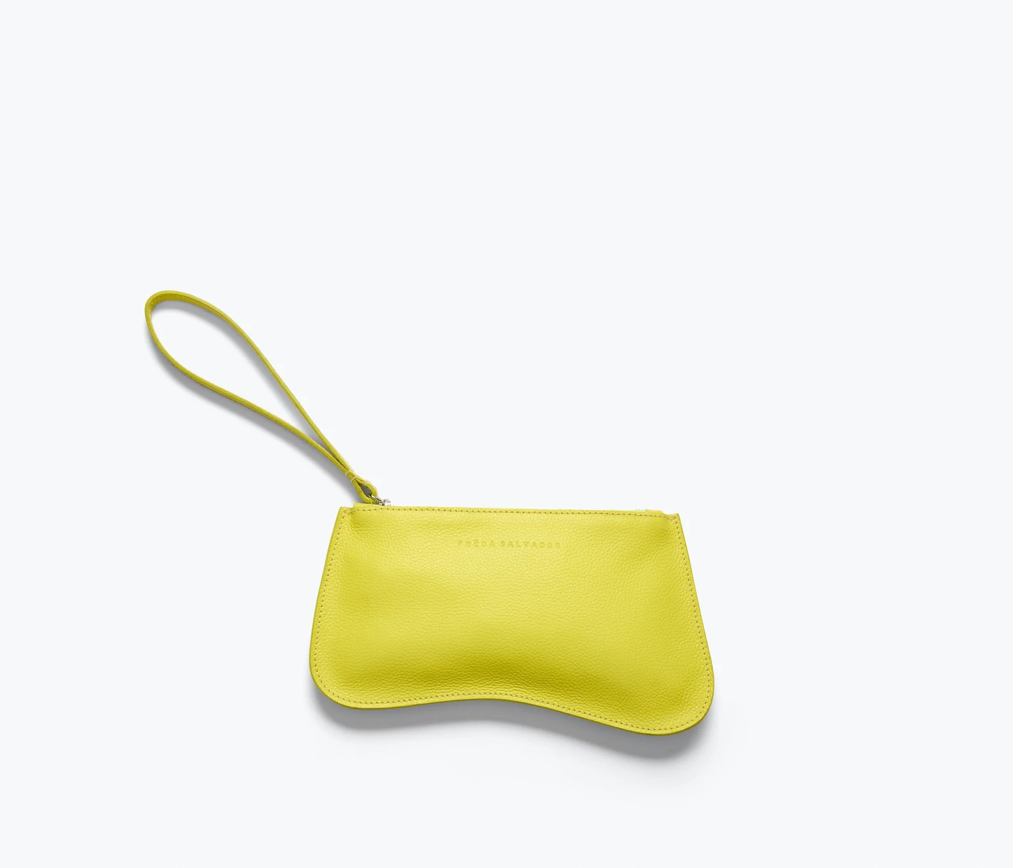 Please note: This style is Final Sale. Cool and refined–this pouch is the fun way to keep your everyday essentials close when you’re on the go. Handcrafted in Italy Materials Our bags are made from the highest quality materials and leathers which will last season after season. - 100% Italian leather in chartreuse pebbled calf. This tannery is rated Leather Working Group Silver. Leather Working Group is a tool to evaluate the environmental performance of leather goods manufacturers. Dimensions + Features DIMENSIONS: - Width: 9.5" - Height: 5.25" FEATURES: - Zipper closure. CARRY YOUR EVERYDAY: The SERENA effortlessly holds your phone and small essentials.