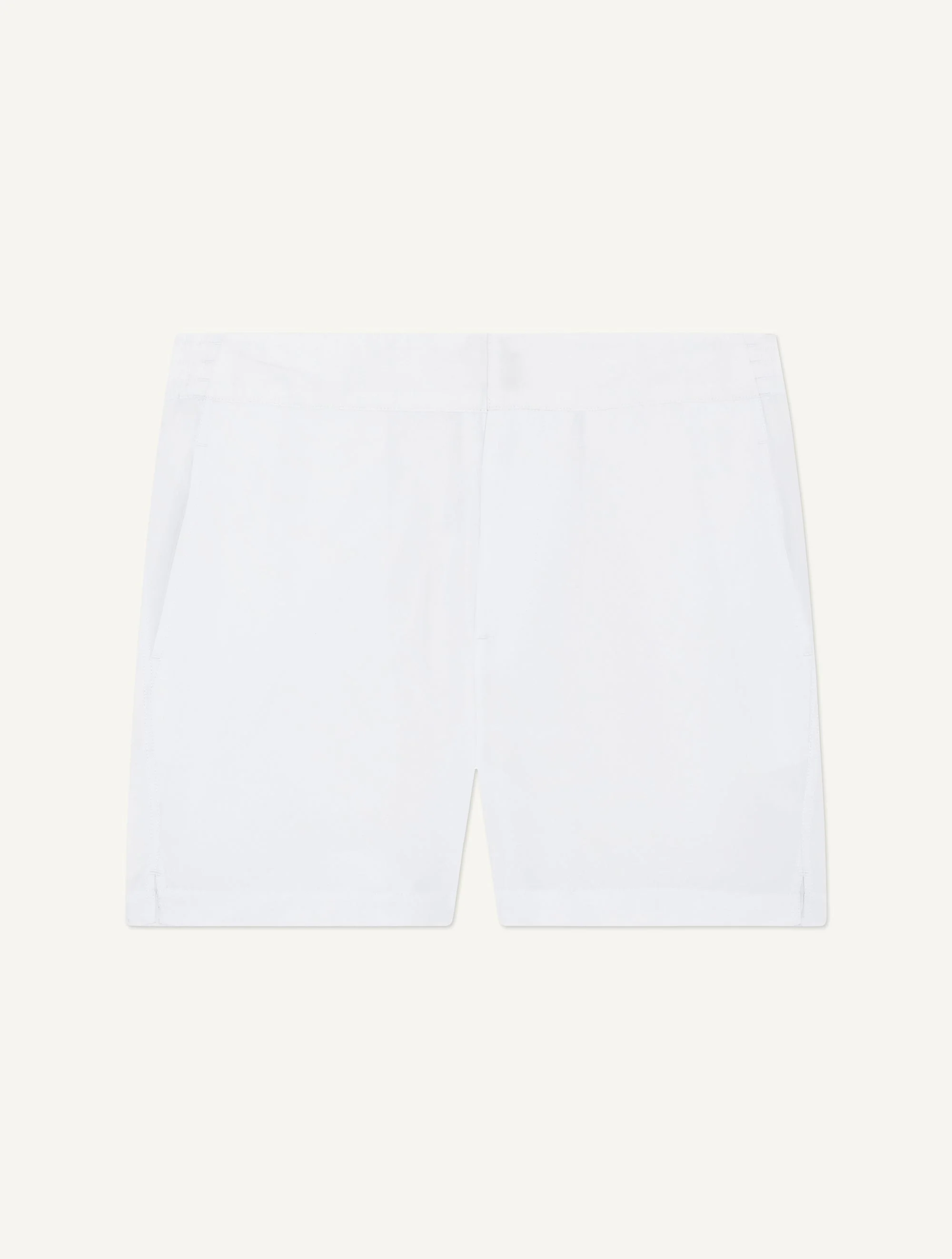 In Rio, you never know when you’ll go from a game of Frescobol on the beach to dinner in the city centre, and these shorts are perfect for both. They combine the sophisticated waistband of our Tailored style with the stretch waistband of our Sports short, resulting in a fit that suits all body types and activities. The shorter leg length is complemented with a side vent panel that expands for easy movement. Product Details Classic Cut Short Length Tailored Front Waistband Elasticated Back Waistband Button and Press-Stud Fastening Zipped Back Pocket Bespoke Quick-Dry Fabric 100% Cotton Mesh Lining Made in the EU