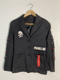 CONDITION - Pre-owned. - Condition (scale 8.5/10) - No hole, no rip and no stain - Refer picture TAG AND MATERIALS - Label : - - Size on tag : Not stated (from measurement it fit to size XS) - Made : China MEASUREMENT - Armpit to armpit : 15.5 inches - Back collar to bottom : 24.5 inches - Sleeve length : 22.5 inches PLEASE LEAVE YOUR PHONE NUMBER ON THE NOTE WHILE MAKE A PURCHASE AND PLEASE MAKE SURE YOUR ADDRESS IS COMPLETE AND CORRECT Kindly see all pictures Thank you so much for your visit Contact us if u have any inquiries Ref: 3076 ATTENTION : Please pay close attention to measurements provided. Do not rely on tag size as pre-worn items may have been altered, stretched or shrunk & vintage sizes do not directly translate the modern sizes.The best way to ensure a correct fit is to compare our measurements with the measurements of a similar item that you know fits you well.Please enlarge the photos for clearer image