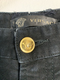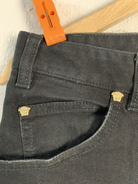 CONDITION - Pre-owned. - Used condition (scale 8.5/10) - No hole, no rip and no stain but badge missing at back - Refer picture TAG AND MATERIALS - Label : Versace - Size on tag : 31 - Made : Italy MEASUREMENT - Waist : 15.5 inches - Inseam : 26.5 inches - Leg Opening : 6.5 inches - Front Rise : 12 inches - Thigh : 11 inches - Knee : 7 inches PLEASE LEAVE YOUR PHONE NUMBER ON THE NOTE WHILE MAKE A PURCHASE AND PLEASE MAKE SURE YOUR ADDRESS IS COMPLETE AND CORRECT Kindly see all pictures Thank you so much for your visit Contact us if u have any inquiries Ref: 2858 ATTENTION : Please pay close attention to measurements provided. Do not rely on tag size as pre-worn items may have been altered, stretched or shrunk & vintage sizes do not directly translate the modern sizes.The best way to ensure a correct fit is to compare our measurements with the measurements of a similar item that you know fits you well.Please enlarge the photos for clearer image