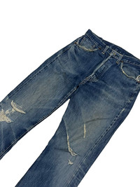 Rare Vintage Levis Big E 501 Button 555 Distressed Denim
