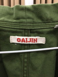 PLEASE SEE CAREFULLY THE MEASUREMENT BELOW !!! BRAND : GAIJIN MADE SIZE ON TAG :lll Armpit : 22" INCHES Shoulder: 18" INCHES Sleeve Length : 22.5" INCHES Length : 30” INCHES MATERIAL : COTTON CONDITIONS : Good used 9/10 condition. Please see more pictures for the details. > Please leave me your contact phone number,as the shipping company always need the phone number to help delivering. >Please do not expect the item in mint condition unless stated. Its because vintage and used items may have sign of wear. > no returns/refunds, so if you have any questions...feel free to ask. Payment : >I accept offer. >Accept PAYPAL only. Shipping : >This item will be ship along with tracking number after received a completed payment. Thank you very much for your visit.