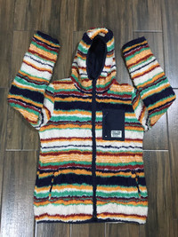 Surf Style - Vtg Ocean Pacific Colour Striped Sherpa Riversible Hoodie