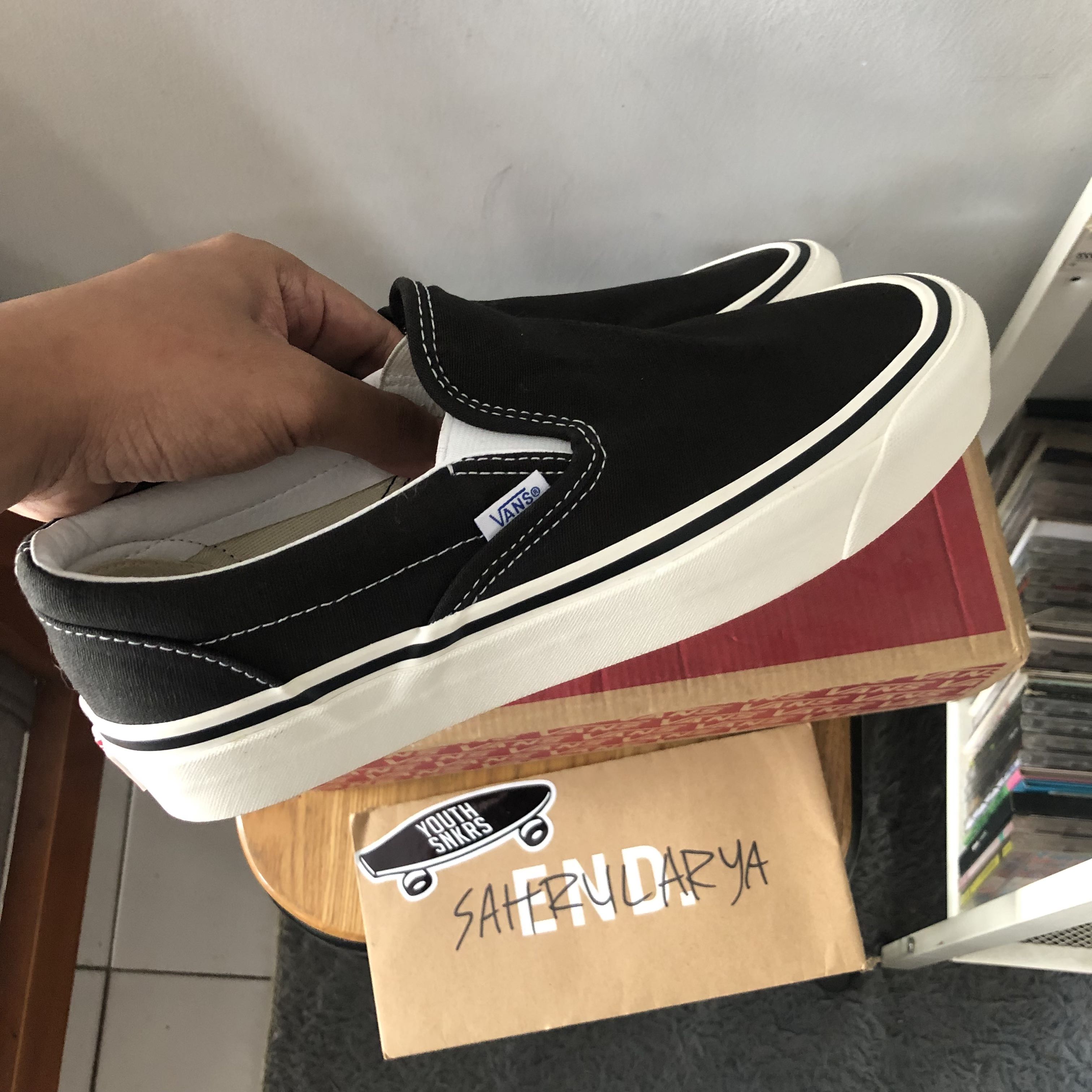 Vans Slip-On Anaheim 98 DX Black/White Brand New In Box Size 7US / 39EUR 100% Authentic Item is in hand and ready to ship ✈️ 🌏Shipping Worldwide🌏 What you see is whay you'll get. If you have any questions, please message me 😸 ‼️ NO RETURN/REFUND/EXCHANGE‼️