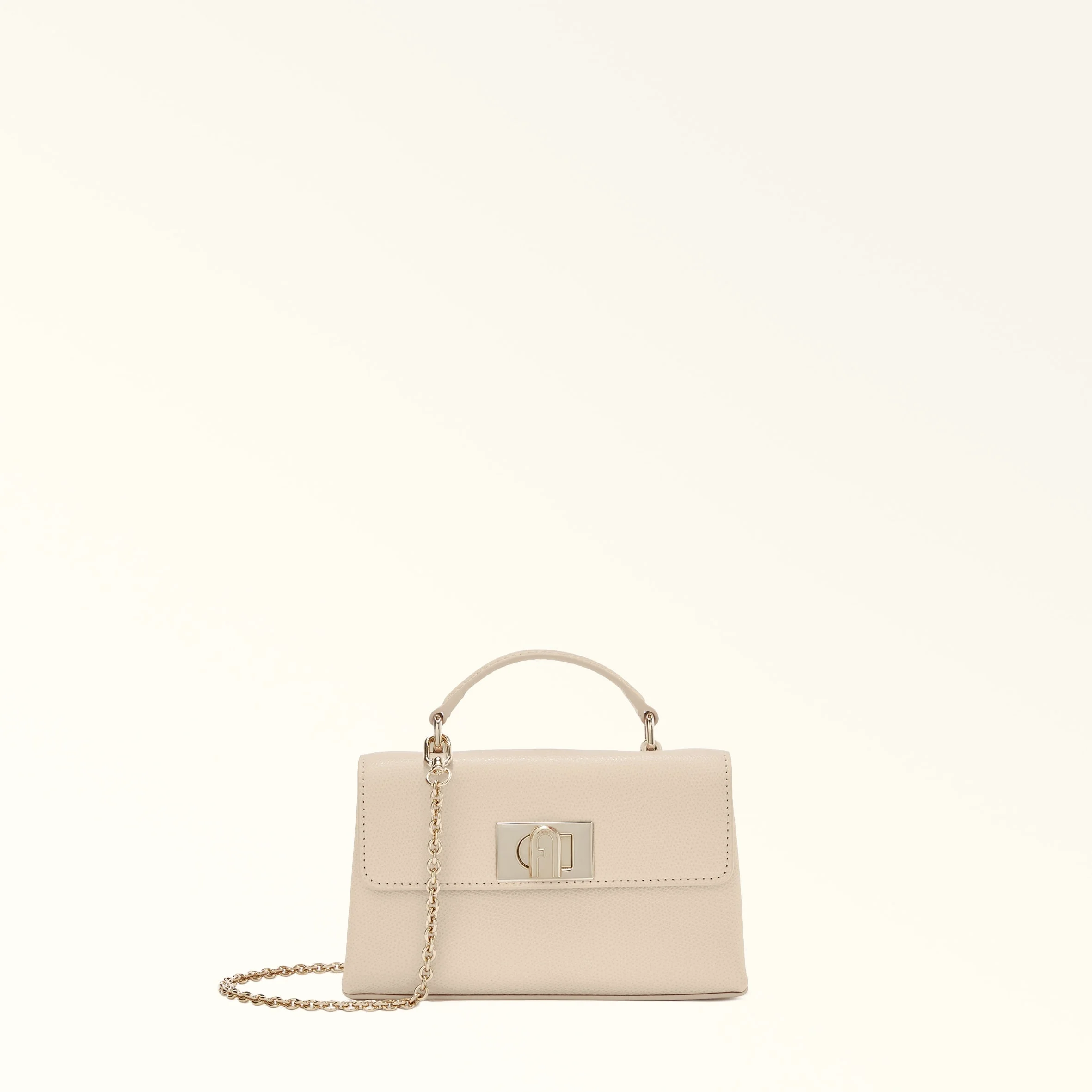 Crafted from luxurious printed leather with a grained texture, this super-cute Furla 1927 mini bag is the epitome of a good thing that comes in a small package. The timeless and elegant piece comes with a top handle and a slim detachable chain strap, allowing for versatile wear. - Three inner credit card slots - Twist closure with Arch logo Details Interior Details: 3 Cc Slots Exterior Details: Top Handle Material: Textured Leather Strap information: Removable/Non Adjustable Chain Strap Closure: 1927 Arch Turn-Lock Product Code: WE00423ARE0001007B4L00 Internal Composition: 80% Polyester 20% Leather External Composition: 100% Leather Plating: Gold Dimensions in INCH 7,28 x 4,13 x 1,77 (w x h x d)
