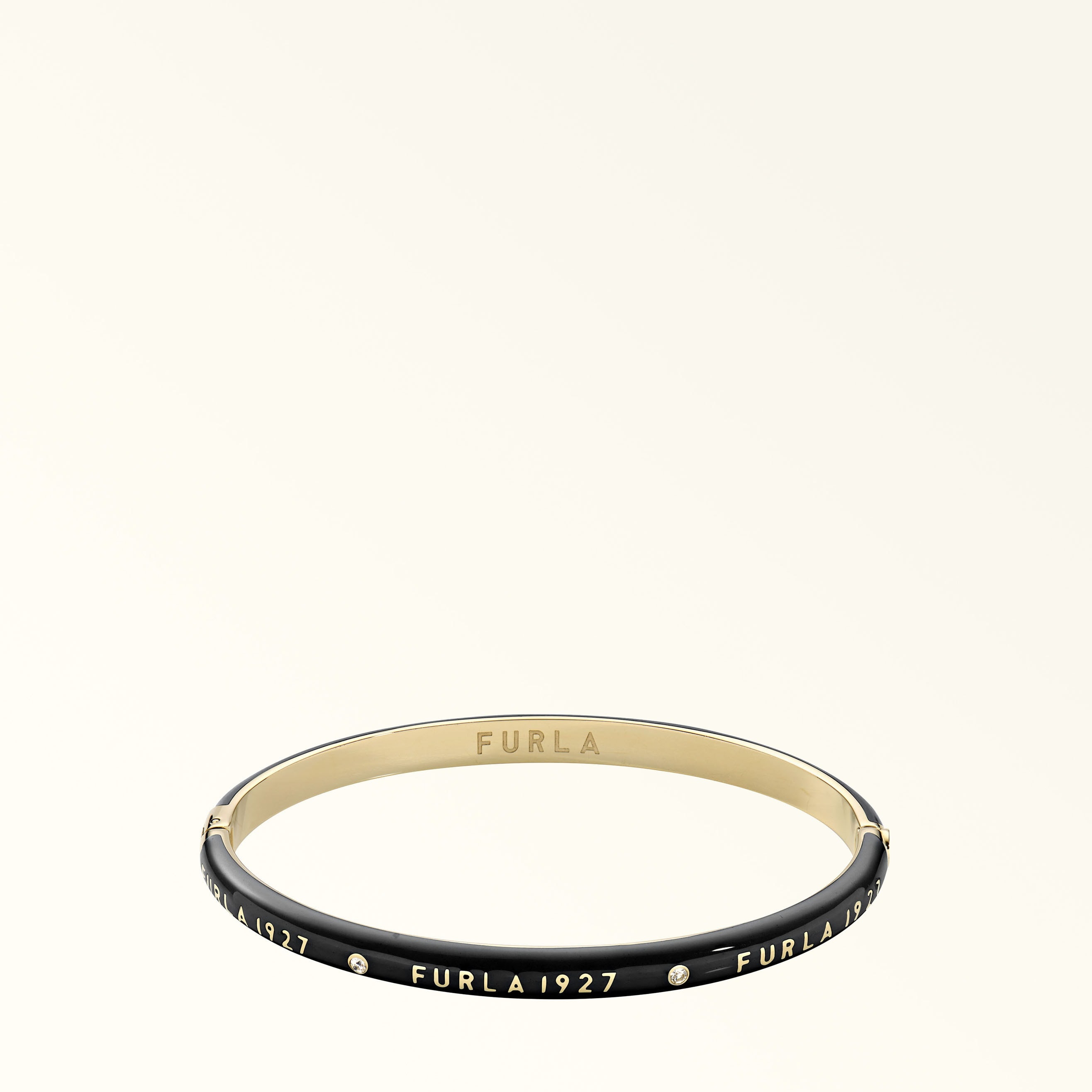 This Furla 1927 bangle is embellished with small rhinestones for a subtle shimmer, and the elegant logo lettering. Made from metal and enamelled resin, it's the perfect option for giving any look a touch of colour. Details Material: Metal + Resin Product Code: WJ00250K2200010073880S External Composition: 85% Resin 5% Glass Plating: Gold