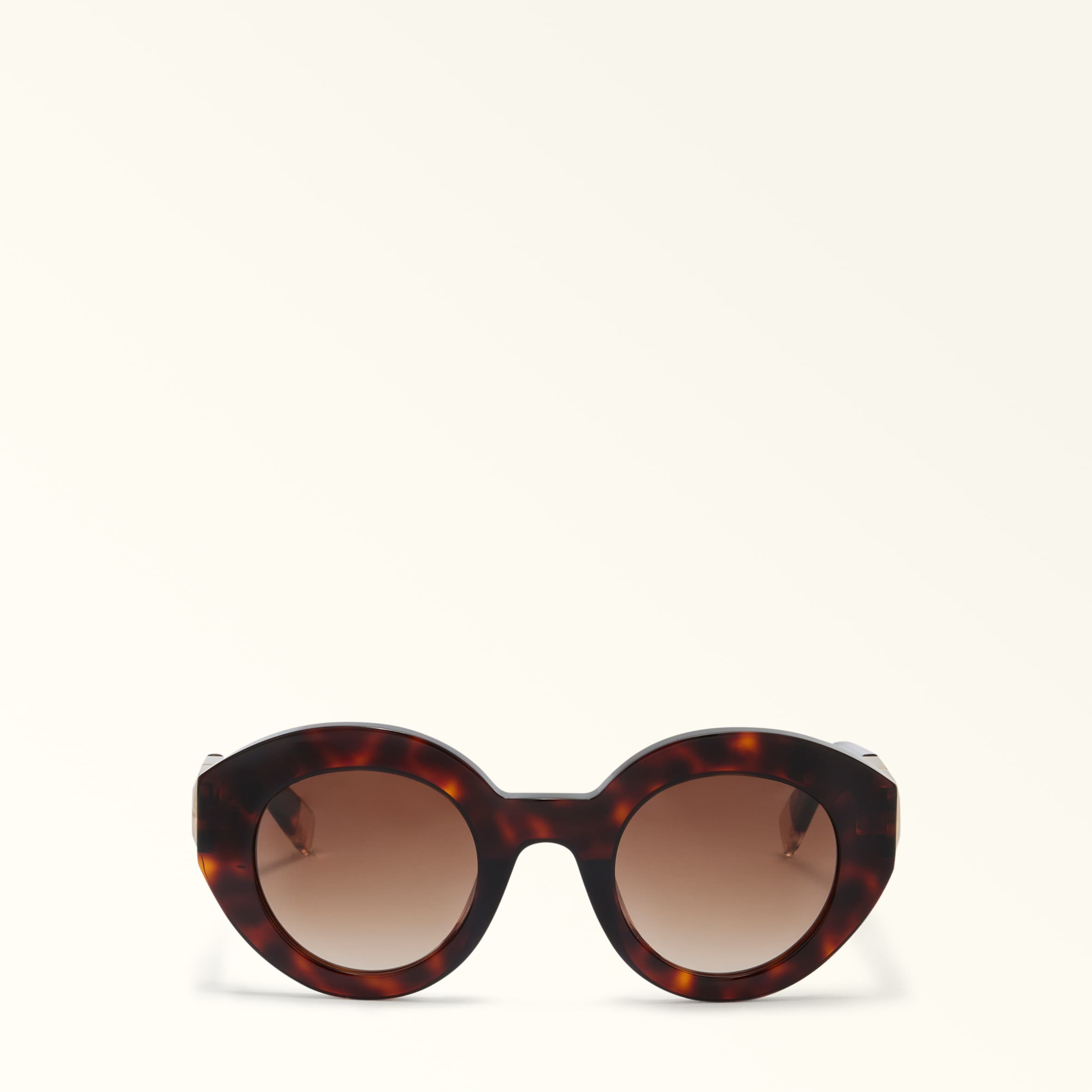 The SFU987 Furla Sunglasses feature a rounded, acetate silhouette. Their bold frame is embellished by the Nuvola Arch detail on the temple sides. - Furla logo plaque on the temple tips - Gradient lenses - Suitable for prescription lenses Details Material: Acetate Frame Material: Acetate Lense Color: Gradient Brown Lense Material: Polyester Cr39 Sunglasses Shape: Round UV protection: cat. 3 Product Code: WD00157AX01164401AN000 Plating: Basic Model Temple: 5.51 in Bridge: 1.02 in Calibre: 1.89 in