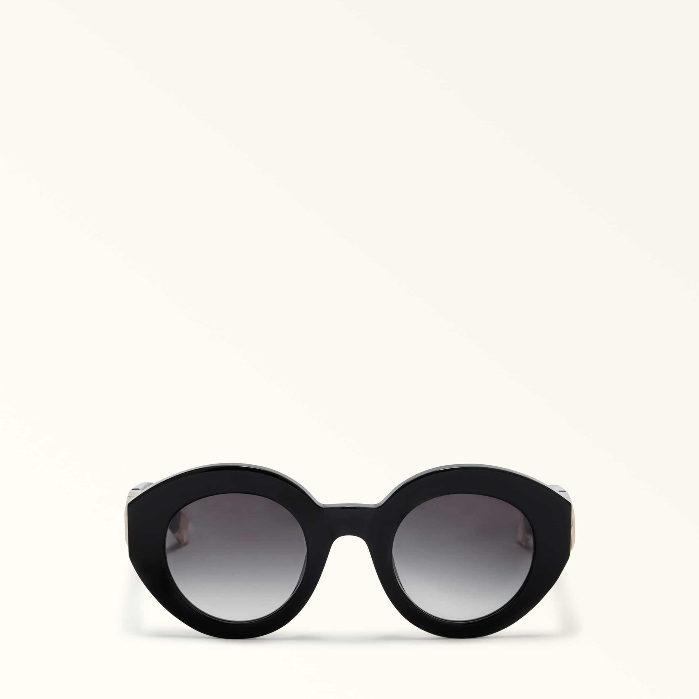 The SFU987 Furla Sunglasses feature a rounded, acetate silhouette. Their bold frame is embellished by the Nuvola Arch detail on the temple sides. - Furla logo plaque on the temple tips - Gradient lenses - Suitable for prescription lenses Details Material: Acetate Frame Material: Acetate Lense Color: Gradient Grey Lense Material: Polyester Cr39 Sunglasses Shape: Round UV protection: cat. 3 Product Code: WD00157AX01164401O6000 Plating: Basic Model Temple: 5.51 in Bridge: 1.02 in Calibre: 1.89 in