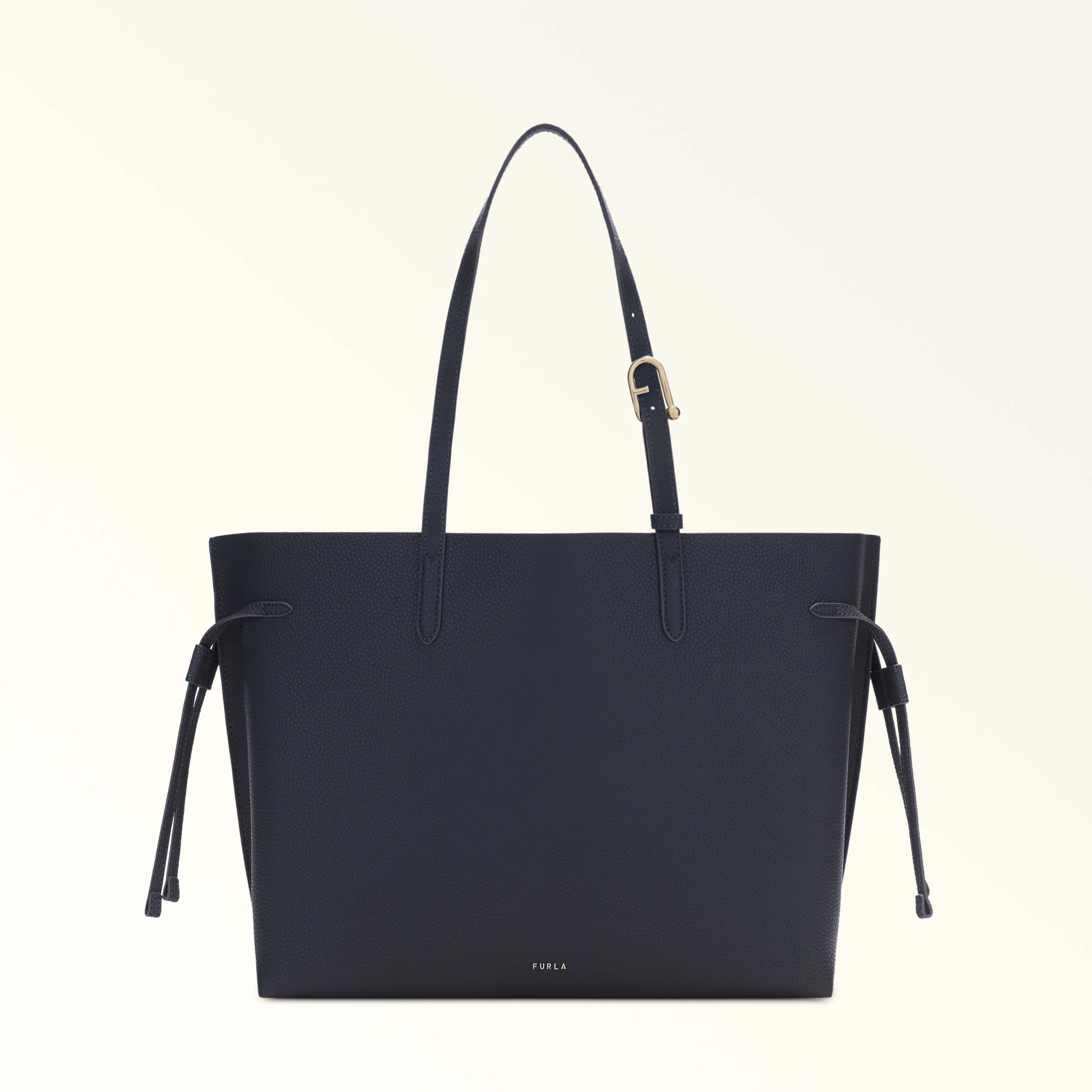 The Furla Ava tote bag is crafted from elegant reversible calfskin with a contrasting colour-block reverse. Its large silhouette features a spacious interior with plenty of room for all your essentials. It can be worn on the shoulder or as a top-handle bag with its two long handles, adjustable using the Arch logo hardware. - Open inside pocket - Two large open compartments - Inner divider with zip - Embossed Furla logo Details Interior Details: 1 Zipped Divider 2 Compartments Flat Open Pockets Material: Double Pebble Calf Leather Closure: Open Top Bag Product Code: WB02001BX432910074858S Plating: Gold Dimensions in INCH 14,37 x 11,61 x 5,31 (w x h x d)