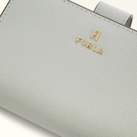 The minimalist design of this Furla Camelia compact wallet makes it the ideal choice to keep in every bag. The inside is designed especially to hold banknotes, cards and ID, and it is crafted from smooth leather, featuring rounded corners and elegant lines. - Ten inner credit card and slots - Inner compartment for banknotes - Four inner side pockets - Inner zipped coin pocket - Flap and press-stud closure - Mini Furla and Arch logo punched on the front Details Interior Details: 10 Cc Slots/4 Lateral Pockets/1 Large Compartment/Pocket With Zip For Coins Material: Textured Leather Closure: Snap Button Closure Hardware: Arch+Furla Lettering / Metal Zip Puller Product Code: WP00314ARE00010074351S Internal Composition: 100% Viscose External Composition: 100% Leather Plating: Gold Dimensions in INCH 5,51 x 3,54 x 1,2 (w x h x d)