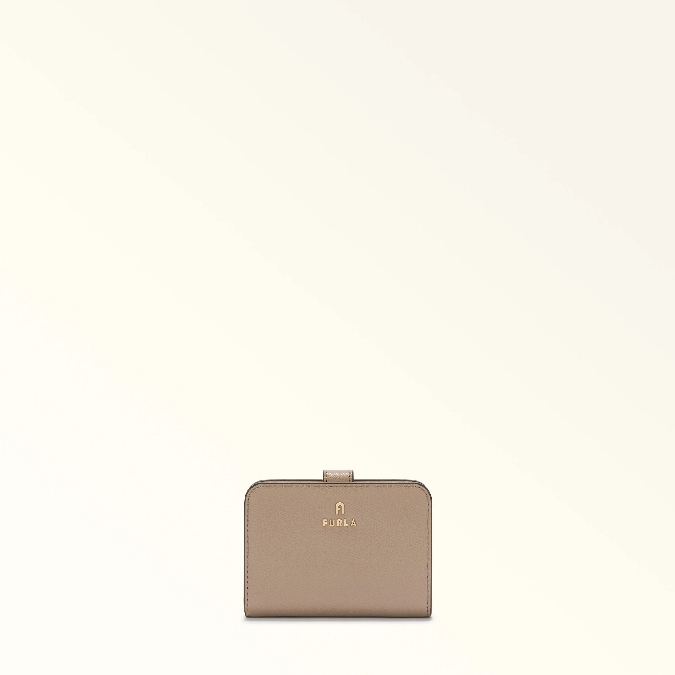 Styled in luxurious printed leather with a grained finish, this Furla Camelia wallet is a compact design, perfect for keeping handy in your bag. Inside it features various pockets and compartments to keep your cash and cards well organised. - Six inner credit card slots - Four inner side pockets - Inner compartment for banknotes - Inner zipped coin pocket - Press-stud closure - Furla and Arch logos punched on the front Details Interior Details: 6 Cc Slots/4 Lateral Pockets/1 Large Compartment/1 Zipped Pocket For Coins Material: Textured Leather Closure: Snap Button Closure Hardware: Arch+Furla Lettering / Metal Zip Puller Product Code: WP00315ARE00010073787S Internal Composition: 100% Viscose External Composition: 100% Leather Plating: Gold Weight: 0.24 kg Dimensions in INCH 4,72 x 3,35 x 0,98 (w x h x d)