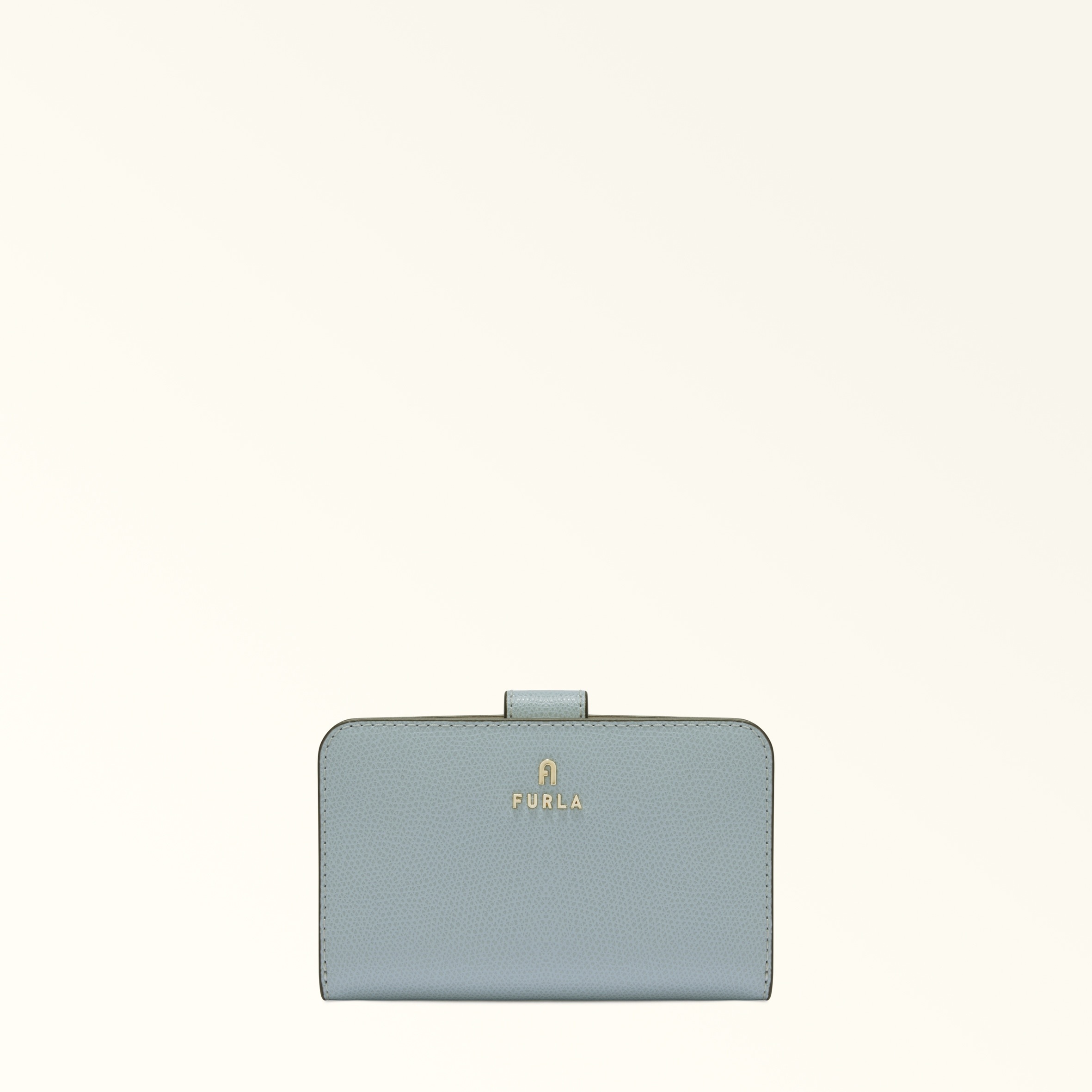 The minimalist design of this Furla Camelia compact wallet makes it the ideal choice to keep in every bag. The inside is designed especially to hold banknotes, cards and ID, and it is crafted from smooth leather, featuring rounded corners and elegant lines. - Ten inner credit card and slots - Inner compartment for banknotes - Four inner side pockets - Inner zipped coin pocket - Flap and press-stud closure - Mini Furla and Arch logo punched on the front Details Interior Details: 10 Cc Slots/4 Lateral Pockets/1 Large Compartment/Pocket With Zip For Coins Material: Textured Leather Closure: Snap Button Closure Hardware: Arch+Furla Lettering / Metal Zip Puller Product Code: WP00314ARE00010073593S Internal Composition: 100% Viscose External Composition: 100% Leather Plating: Gold Dimensions in INCH 5,51 x 3,54 x 1,2 (w x h x d)