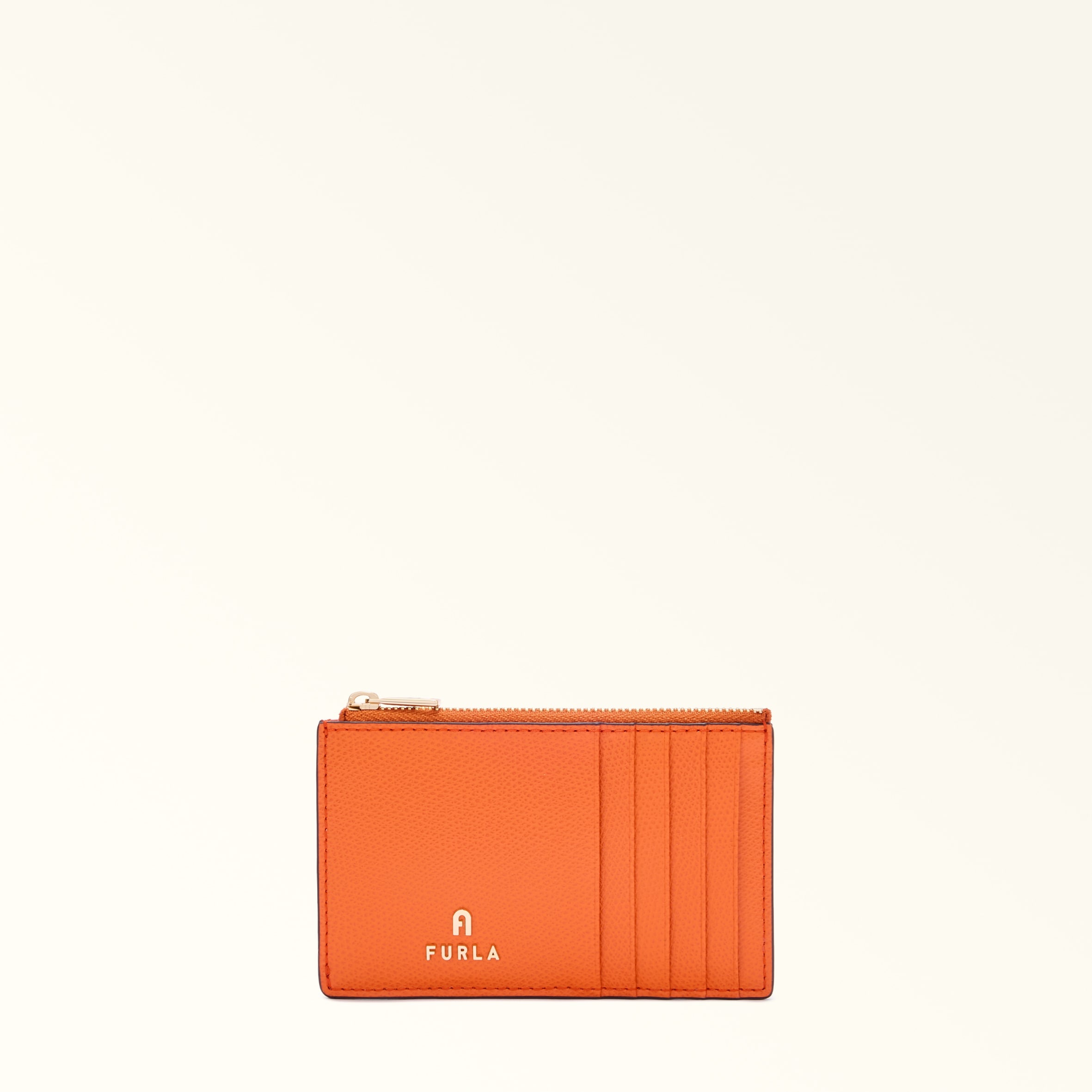 Crafted from luxurious printed leather, this Furla Camelia card holder is small and slim enough to slot into even the smallest bag. - Five credit card slots on the front and back - Zip closure - Mini Furla and Arch logo punched on the front Details Exterior Details: 5 Cc Slots On Front Panel/5 Cc Slots On The Back Panel/1 Central Zipped Pocket Material: Textured Leather Closure: Zipper Hardware: Arch+Furla Lettering / Metal Zip Puller Product Code: WP00310ARE0001007KP000 Internal Composition: 100% Viscose External Composition: 100% Leather Plating: Gold Dimensions in INCH 5,12 x 3,15 (w x h)
