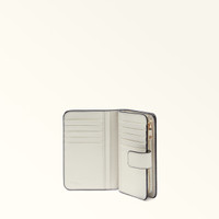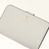 The minimalist design of this Furla Camelia compact wallet makes it the ideal choice to keep in every bag. The inside is designed especially to hold banknotes, cards and ID, and it is crafted from smooth leather, featuring rounded corners and elegant lines. - Ten inner credit card and slots - Inner compartment for banknotes - Four inner side pockets - Inner zipped coin pocket - Flap and press-stud closure - Mini Furla and Arch logo punched on the front Details Interior Details: 10 Cc Slots/4 Lateral Pockets/1 Large Compartment/Pocket With Zip For Coins Material: Textured Leather Closure: Snap Button Closure Hardware: Arch+Furla Lettering / Metal Zip Puller Product Code: WP00314ARE0001007PNN00 Internal Composition: 100% Viscose External Composition: 100% Leather Plating: Gold Dimensions in INCH 5,51 x 3,54 x 1,2 (w x h x d)
