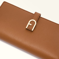This Furla Flow continental wallet is styled in fine leather with a soft hand. A joy to touch, the super-slim bi-fold design is practical and convenient, in that it can easily fit into a bag or backpack, or even an elegant clutch. While the inside is carefully organised to hold cards, documents and banknotes, the outside boasts a press-stud closure embellished with an iconic Arch logo. - Seven inner credit card and ID slots - Inner compartment for banknotes - Three flat pockets - Zipped inner pocket Details Interior Details: 7 Cc Slots 1 Banknotes Pocket 3 Flat Pockets 1 Zipped Pocket Material: Claris Lux Calf Leather Closure: Snap Button Closure Hardware: Furla Arch Gasket Product Code: WP00402BX20451007RY000 Internal Composition: 100% Viscose External Composition: 100% Leather Plating: Gold Weight: 0.28 kg Dimensions in INCH 7,28 x 3,74 x 0,79 (w x h x d)