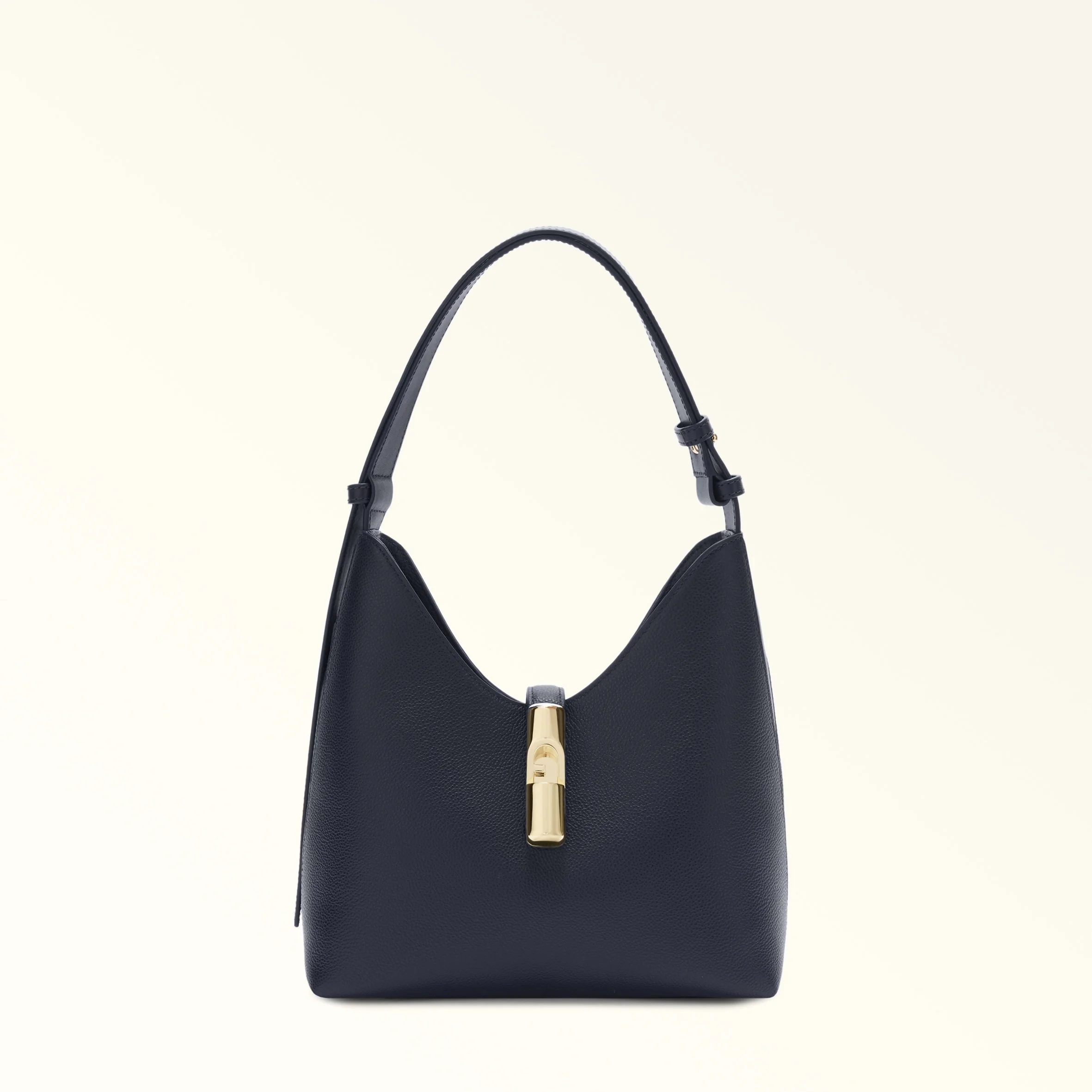 Made from smooth leather and printed calfskin, the Furla Goccia hobo bag stands out for its soft, unstructured shape. The bag is enhanced by a tab matching the adjustable contrasting leather handle. New weighted cylindrical hardware with the Furla Arch logo fastens the accessory with elegance. - Open inside pocket - Inside zip pocket Details Exterior Details: Furla Punched Logo/Single Handle Material: Night Calf Leather Strap Length Max: 35.63 in Strap Length Min: 30.91 in Hardware: Metal Feet Product Code: WB01979BX335310074852S Plating: Gold Dimensions in INCH 9,45 x 9,45 x 4,72 (w x h x d)