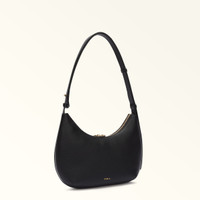 This Furla Goccia shoulder bag is styled in grained leather with contrasting details in smooth leather, and finished with a two-way zip embellished with the unusual cylindrical glossy-finish hardware with the Arch logo on one of the leather pullers. With sleek, curved lines, the rounded shape is compact yet spacious enough for your daily essentials. - Open inside pocket - Inside zip pocket - Adjustable smooth leather handle Details Exterior Details: Furla Punched Logo Material: Night Calf Leather + Sidney Calf Leather Strap information: Fixed/Adjustable Shoulder Strap Closure: Top Zipper Closure Product Code: WB01500BX33531007O6000 Internal Composition: 100% Polyester External Composition: 100% Leather Plating: Gold Dimensions in INCH 8,66 x 8,27 x 2,95 (w x h x d)