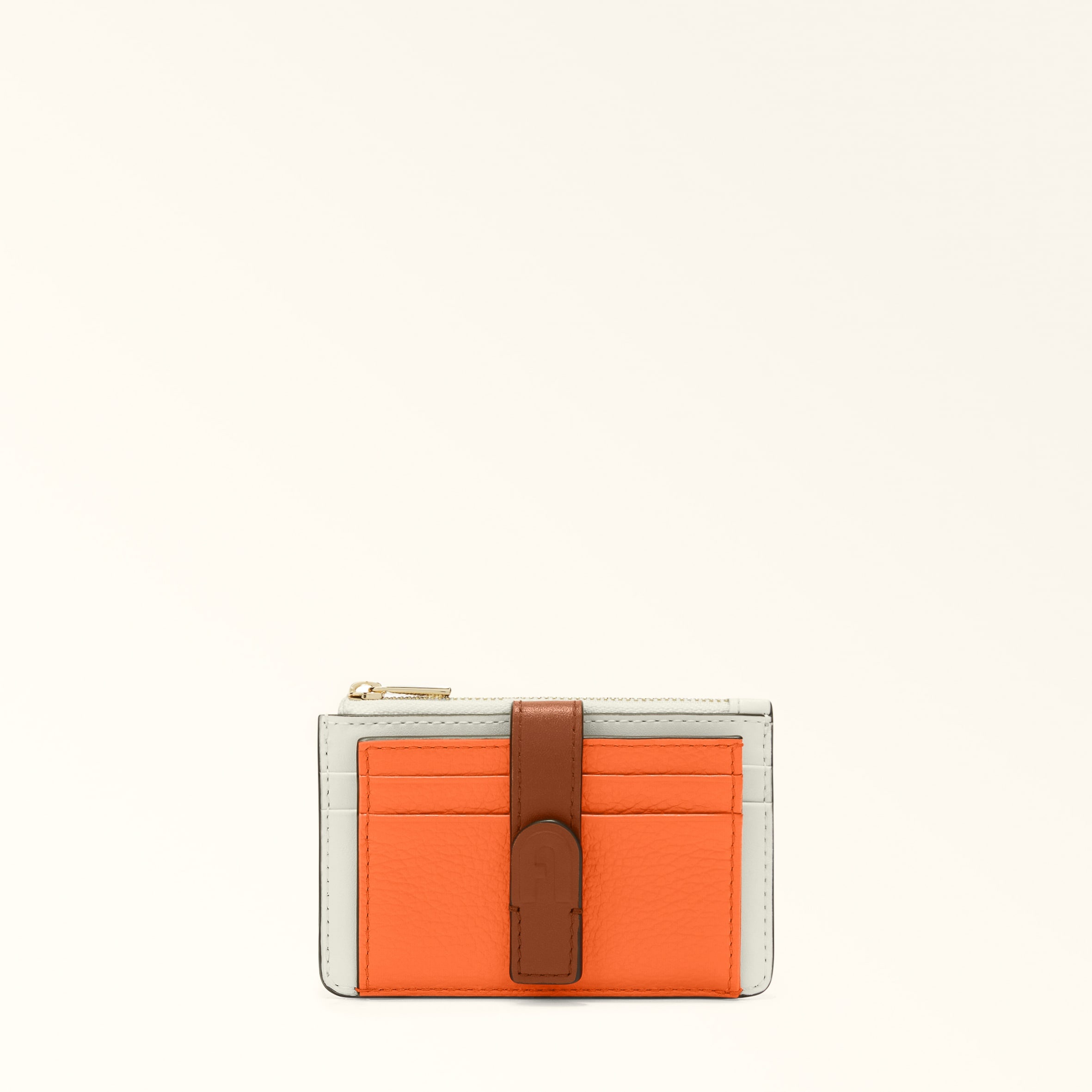 Versatile and compact enough to slip into any bag, the Furla Grazia wallet features a striking combination of materials; its smooth leather front is embellished with a contrasting grained leather detail for a colour-block effect. . - Two card slots on the front panel - Two card slots on the back panel - Inside pocket for a key card - Zip and press-stud closure - Arch logo embossed on the front Details Material: Roma Soft Calf Leather Colorblock + Grained Calf Leather Hardware: Metal Zip Puller Product Code: WP00548BX158810074056S Internal Composition: 60% Viscose 24% Polyester 16% Polyurethane External Composition: 100% Leather Plating: Gold Dimensions in INCH 4,72 x 3,15 x 0,59 (w x h x d)