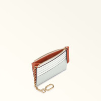 A versatile, compact wallet that you can store in any bag. Furla Grazia stands out for its mixture of materials: smooth leather and contrasting grained trims with a colour-block effect. Complete with a small metal snap hook with side chain, it attaches to accessories with ease. - Four credit card and ID slots on the front panel - Four credit card and ID slots on the rear panel - Zipped coin pocket - Embossed Arch logo on the front Details Material: Roma Soft Calf Leather Colorblock + Grained Calf Leather Product Code: WP00495BX158810073779S Internal Composition: 100% Viscose External Composition: 100% Leather Plating: Gold Dimensions in INCH 4,33 x 3,74 x 0,59 (w x h x d)