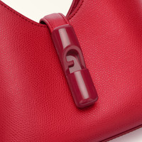 Made from printed leather, the Furla Iride mini hobo bag stands out for its soft trapezoidal shape. The accessory's matching tab is embellished with the brand's weighted cylindrical hardware and the iconic Furla Arch logo, keeping it safely fastened. Its compact open interior holds all your essentials. - Inside zip pocket - Adjustable leather handle - Metal feet - Punched Furla logo Details Interior Details: 1 Zipped Pocket Exterior Details: Furla Punched Logo Material: Textured Leather Strap information: Removable/adjustable leather strap Strap Length Max: 23.62 in Strap Length Min: 19.09 in Product Code: WE00820ARE0009001FR700 Plating: Matching+Light Gold Dimensions in INCH 6,89 x 7,28 x 3,94 (w x h x d)