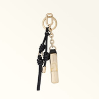 The Furla Iride keyring features a cylindrical metal pendant engraved with the iconic Arch logo. Complete with two knotted leather straps, it's perfect for adding a distinctive touch to a bunch of keys or your favourite bag. - Snap hook and ring with engraved Furla logo Details Exterior Details: Furla Logo Engraved On The Metal Material: Textured Leather + Metal Product Code: WR00883AME0001007CGO00 Plating: Gold Dimensions in INCH 0,79 x 8,27 x 0,79 (w x h x d)