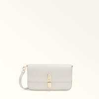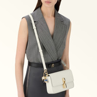 The shape of the Furla Iride crossbody is defined by its versatile, contemporary design. Its compact silhouette, in exquisite textured leather, features an adjustable and detachable shoulder strap for multiple styling options. Its magnetic closure is embellished with cylindrical metal hardware, finished with the iconic Furla Arch logo. - Inside zip pocket - Printed Furla logo Details Interior Details: 1 Zipped Pocket Exterior Details: Furla Punched Logo Material: Textured Leather Strap information: Removable/adjustable leather strap Strap Length Max: 46.46 in Strap Length Min: 41.34 in Product Code: WB01826ARE0001007PNN00 Plating: Gold Dimensions in INCH 9,45 x 5,12 x 2,36 (w x h x d)
