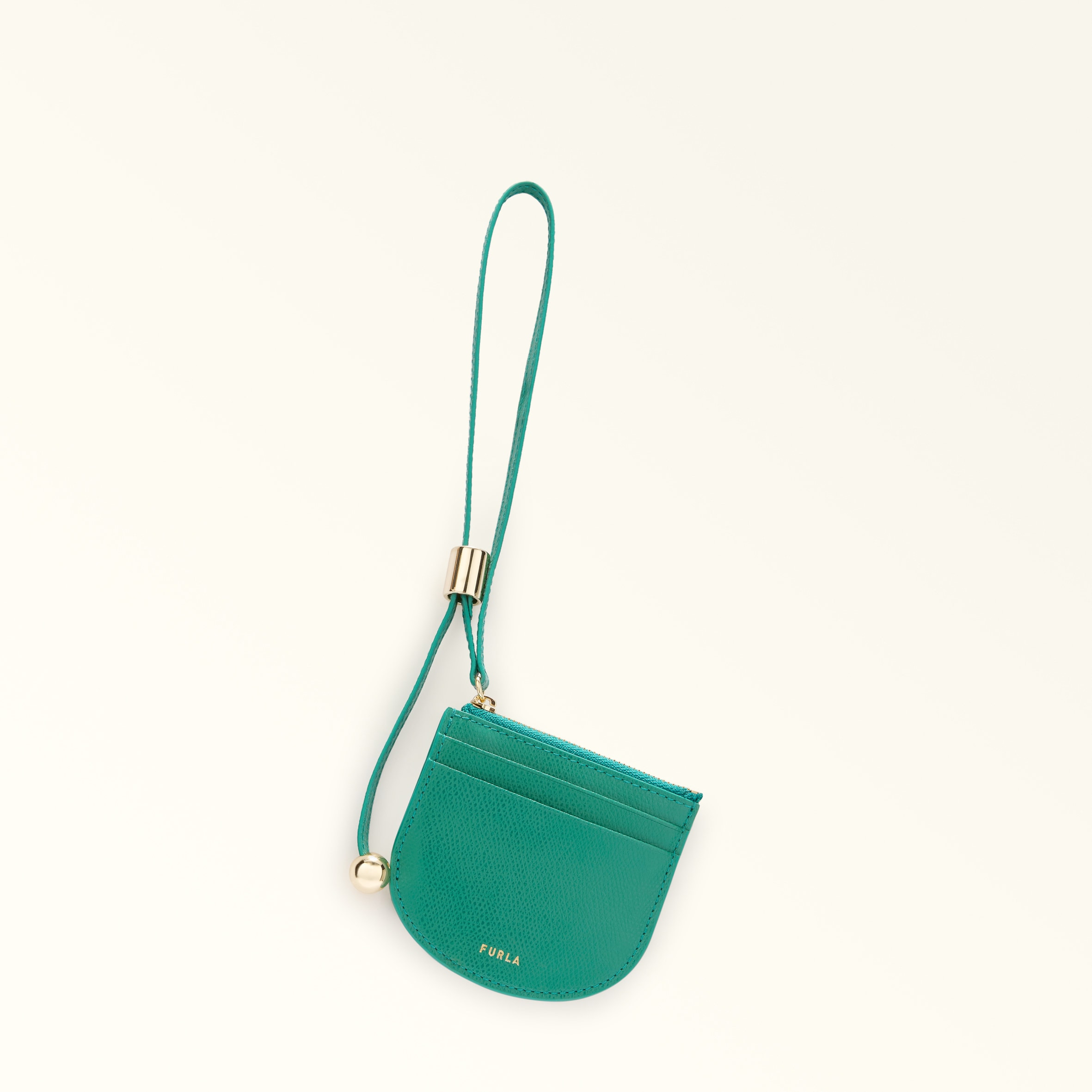 The Furla Laura card holder is made of leather with a subtle printed texture. It is compact enough to slip into any bag, but features several inner compartments for your cash, coins and receipts. Its long strap sits comfortably in your hand or around your wrist, and a zip closure with leather pull embellishes its rounded silhouette. - Two credit card slots on the front and back - Metal Sfera embellishment on leather zip puller - Furla logo embossed on the front Details Material: Textured Leather Product Code: WP00512ARE0001007JD000 Internal Composition: 60% Viscose 40% Leather External Composition: 100% Leather Plating: Gold Dimensions in INCH 3,94 x 3,94 x 0,2 (w x h x d)
