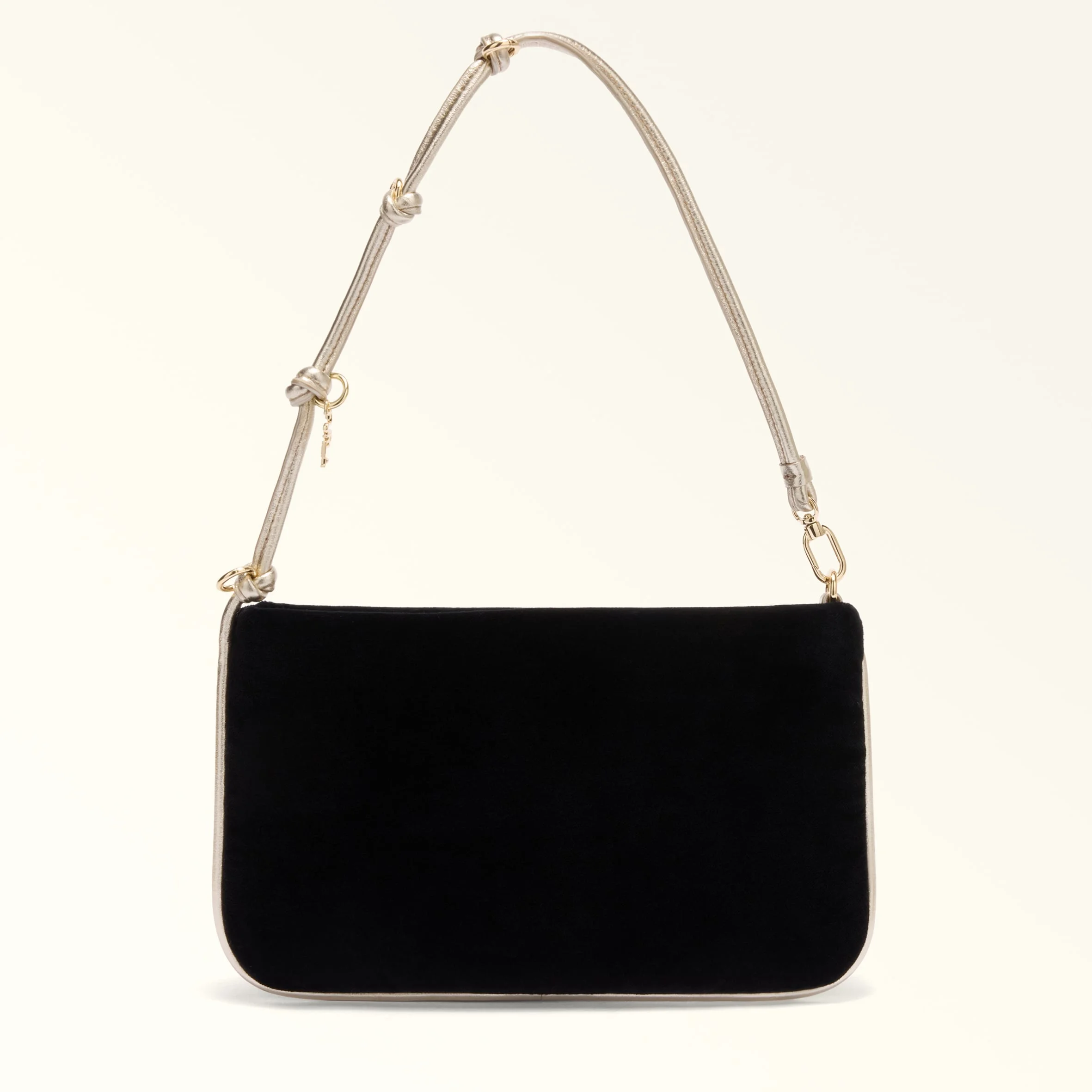 Elegant and original, the Furla Lily clutch comes in silky soft velvet trimmed with radiant piping in a contrasting metallic shade. Its flat rectangular design is perfect for holding all your essentials. The shoulder strap can be detached from one side, meaning you can wear the accessory on your shoulder or around your waist; decorative metal eyelets leave room for personalisation with pendants and charms. - Three inner card slots - Furla logo charm - Punched Furla logo - Zip fastening Details Interior Details: 3 Cc Slots Exterior Details: Furla Punched Logo Material: Velvet + Piping Metal Product Code: WE00828BX42091007TON00 Plating: Gold Dimensions in INCH 9,84 x 5,51 x 0,79 (w x h x d)