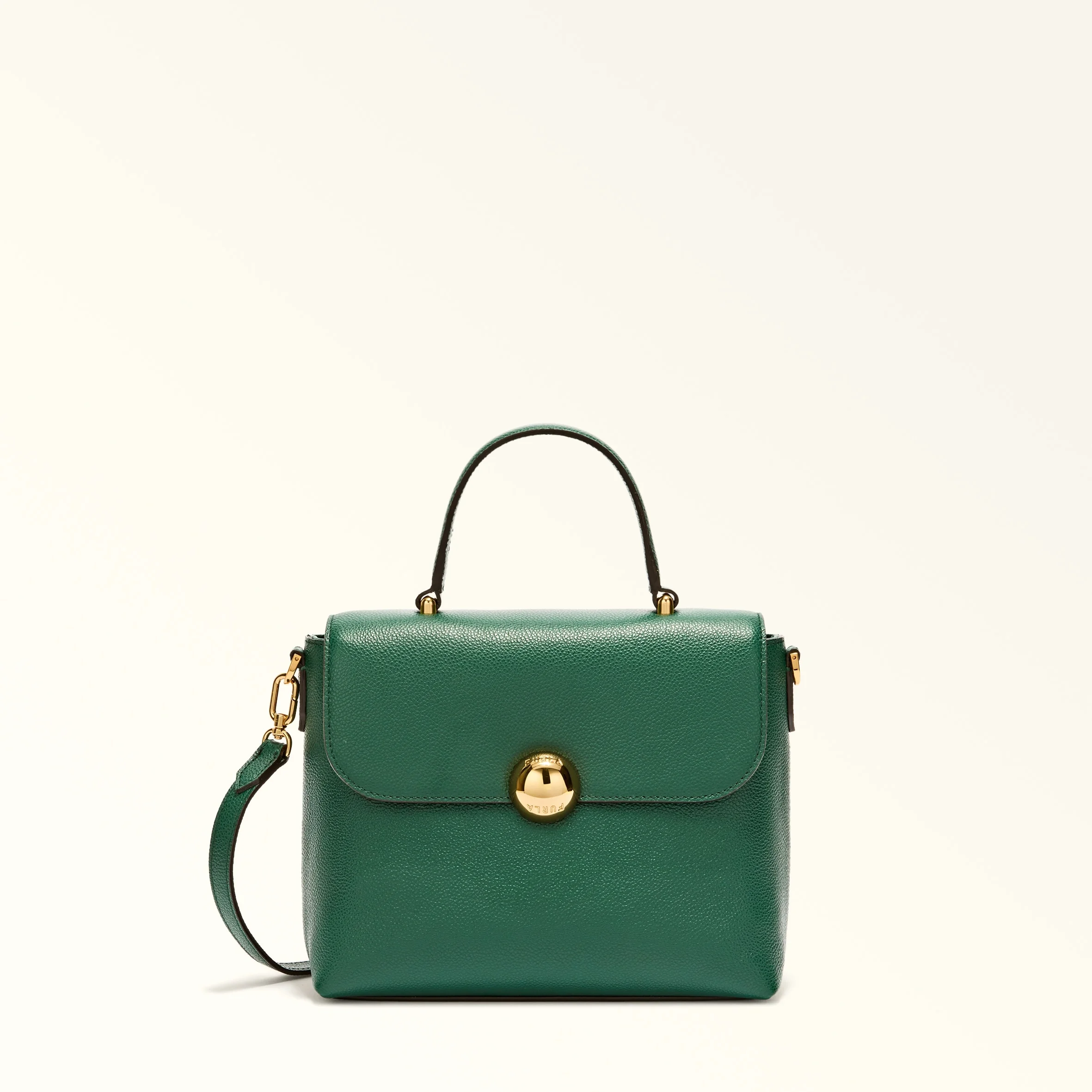 This compact take on the Furla Moonlight handbag is crafted from fine leather with a subtle textured finish. Its rounded silhouette can be worn in an array of ways using its detachable and adjustable matching strap, making it the perfect accessory for completing any daytime or evening look. - Open inside pocket - Inside zip pocket - Flap closure with magnetic button and Sfera logo - Printed Furla logo Details Material: Night Calf Leather Strap information: Removable/adjustable leather strap Strap Length Max: 47.64 in Strap Length Min: 42.91 in Product Code: WB01882BX303610024282S Plating: Polished Bronze Dimensions in INCH 8,66 x 6,69 x 3,74 (w x h x d)