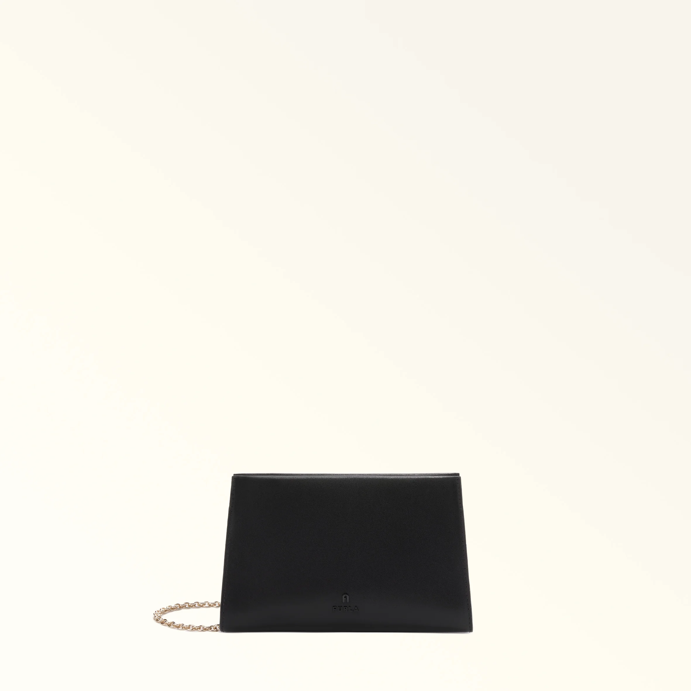 The Furla Myfurla clutch delivers elegant style in miniature form. Made from soft smooth leather, it stands out for its geometric trapezoid shape. The chain shoulder strap with leather sections is removable, allowing you to wear it crossbody or carry it as a sophisticated clutch. - Open inside pocket - Two side hooks for handle or additional straps - Magnetic closure - Arch and Furla logo punched on the front Details Interior Details: 1 Flat Open Pocket Material: Sidney Calf Leather Strap Length Max: 42.52 in Strap Length Min: 42.52 in Product Code: WE00774BX31041007O6000 Internal Composition: 100% Polyester External Composition: 100% Leather Plating: Gold Weight: 0.31 kg Dimensions in INCH 8,46 x 5,12 x 2,36 (w x h x d)