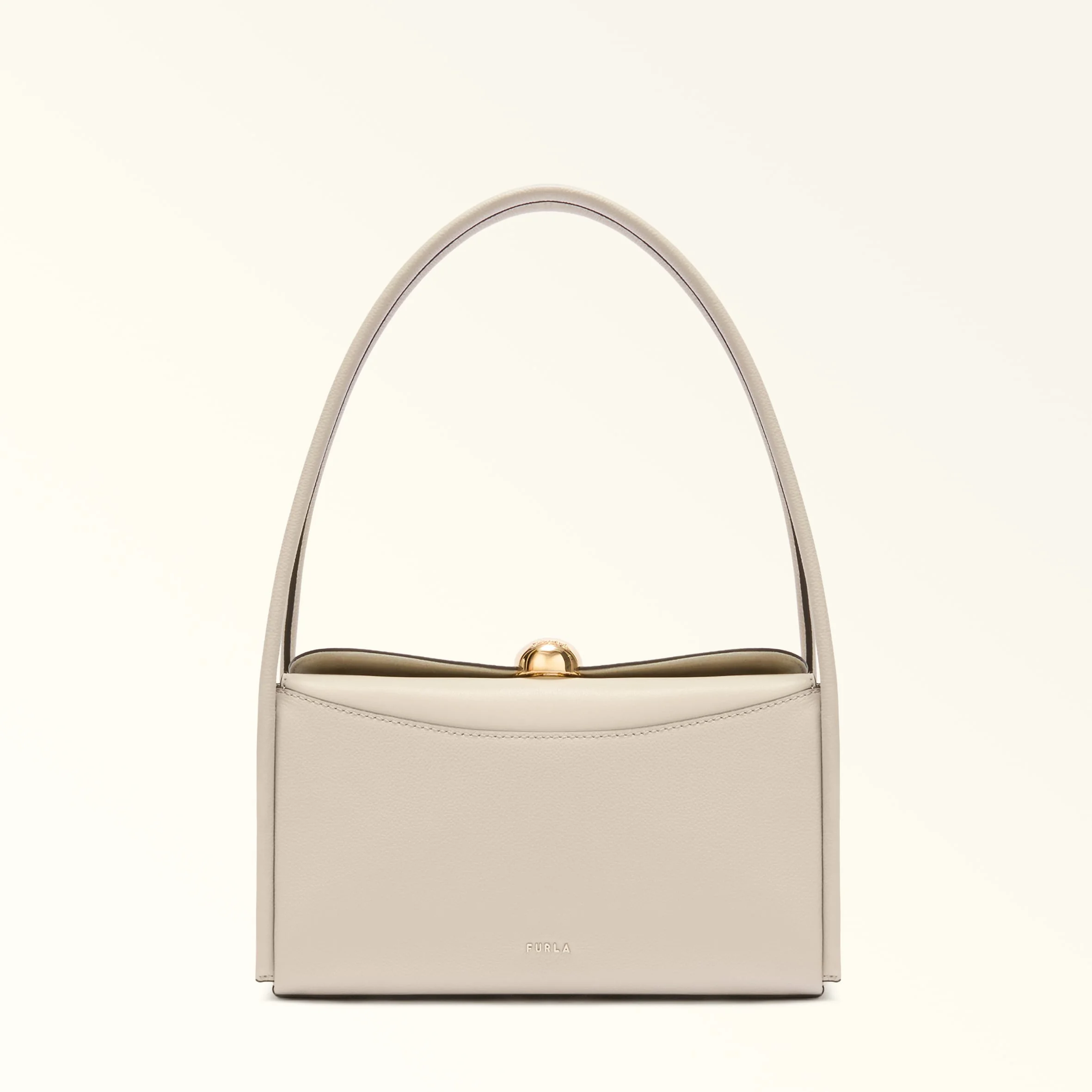 With square structured lines and a contemporary design, the Furla Nicole Boston bag in grained calfskin has ample room and inside pockets for storing your personal belongings. Its matching tubular shoulder strap is adjustable and detachable, allowing a range of styling options. Sfera hardware adds a unique flourish, hiding the magnetic button on the front flap. - Open inside pocket - Inside zip pocket - Two matching leather handles - Furla logo punched on the front Details Material: Night Calf Leather + Sidney Calf Leather Product Code: WB01883BX429610074556S Plating: Gold Dimensions in INCH 11,02 x 6,1 x 3,74 (w x h x d)