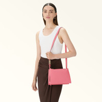 The small Furla Nuvola crossbody exudes a soft, delicate allure. Made of fine textured leather, it features a square geometric silhouette, two open inside compartments with a central divider and a top zip closure. Its detachable shoulder strap has an adjustable length, sitting comfortably on the shoulder or across the body. The Arcosfera hardware adds a unique detail to the bag, combining the iconic Furla Arch logo with the brand's original spherical hallmark. - Open inside pocket - Inside zip pocket - Stud buttons at the sides to adjust the handle - Furla logo punched on the front Details Interior Details: Divider 2 Compartments 1 Zip Pocket Flat Open Pockets Exterior Details: Furla Punched Logo Material: Grained Calf Leather Strap information: Removable/adjustable leather strap Strap Length Max: 41.73 in Strap Length Min: 39.37 in Closure: Zipper Hardware: Furla Arch Ring Cufflinks For Regolation Product Code: WB01275HSF00010074130S Internal Composition: 100% Polyester External Composition: 100% Leather Plating: Gold Dimensions in INCH 9,84 x 6,89 x 3,15 (w x h x d)