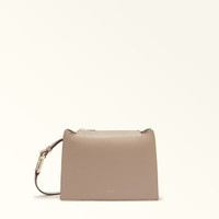 The small Furla Nuvola crossbody exudes a soft, delicate allure. Made of fine textured leather, it features a square geometric silhouette, two open inside compartments with a central divider and a top zip closure. Its detachable shoulder strap has an adjustable length, sitting comfortably on the shoulder or across the body. The Arcosfera hardware adds a unique detail to the bag, combining the iconic Furla Arch logo with the brand's original spherical hallmark. - Open inside pocket - Inside zip pocket - Stud buttons at the sides to adjust the handle - Furla logo punched on the front Details Interior Details: Divider 2 Compartments 1 Zip Pocket Flat Open Pockets Exterior Details: Furla Punched Logo Material: Grained Calf Leather Strap information: Removable/adjustable leather strap Strap Length Max: 41.73 in Strap Length Min: 39.37 in Closure: Zipper Hardware: Furla Arch Ring Cufflinks For Regolation Product Code: WB01275HSF00010072572S Internal Composition: 100% Polyester External Composition: 100% Leather Plating: Gold Dimensions in INCH 9,84 x 6,89 x 3,15 (w x h x d)