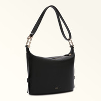 This stylish, compact Furla Nuvola hobo bag boasts geometric lines and a delicate design, and is styled in soft leather with a natural grained finish. The spacious interior features one open compartment suitable for storing all essentials. The removable, adjustable handle stands out thanks to the new version of the Arcosfera hardware, which brings the iconic Furla Arch logo together with the brand's original spherical hallmark. - Inside slip pocket with zip - Stud buttons at the sides to adjust the handle - Zip closure - Furla logo punched on the back Details Exterior Details: Furla Punched Logo/Leather Zip Puller Material: Claris Lux Calf Leather Strap information: Removable/adjustable leather strap Strap Length Max: 44.09 in Strap Length Min: 44.09 in Closure: Zipper Product Code: WB01656BX20451007O6000 Internal Composition: 100% Polyester External Composition: 100% Leather Plating: Gold Dimensions in INCH 11,02 x 8,46 x 3,94 (w x h x d)