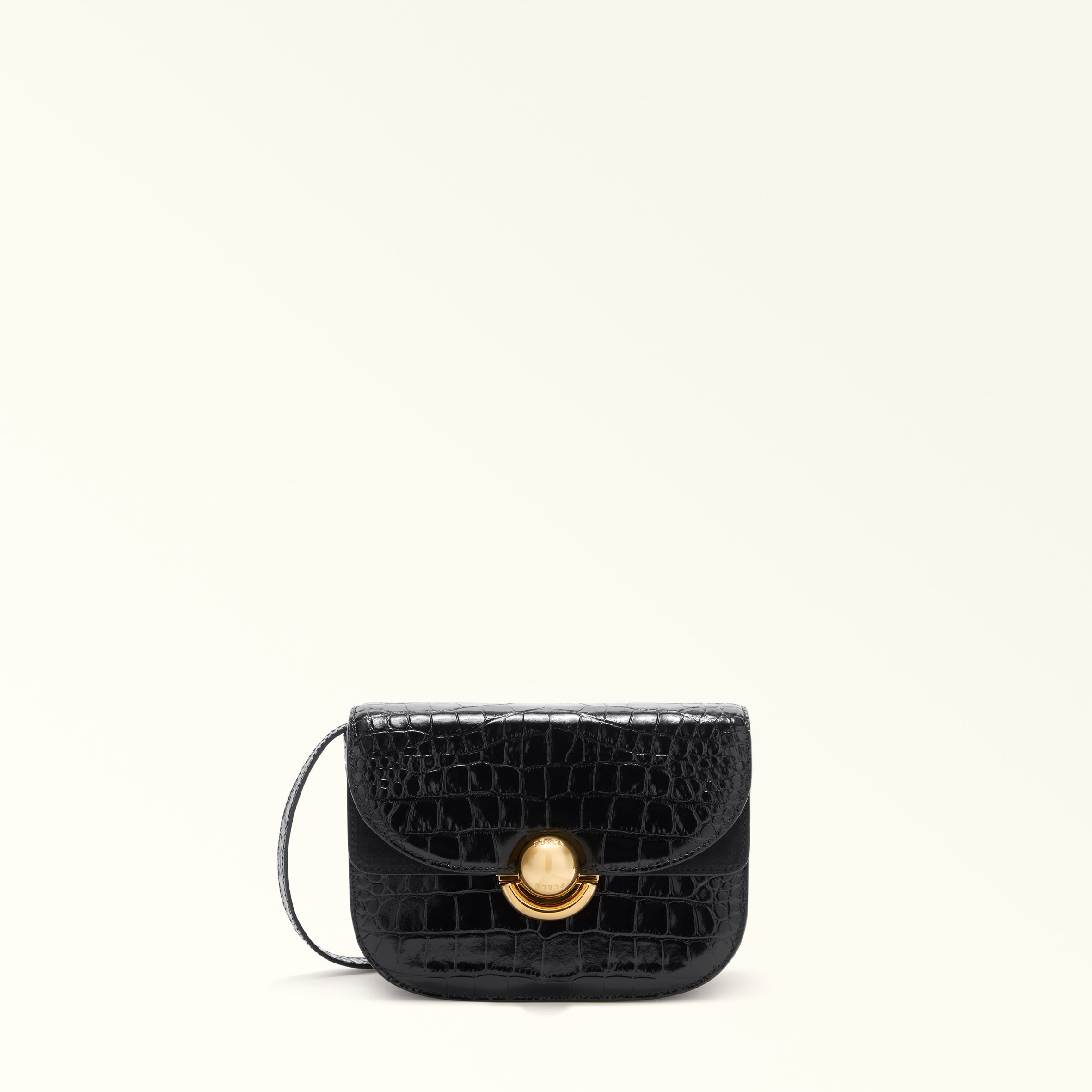 Striking and sophisticated, get inspired by the new Furla Sfera crossbody styles – a limited edition for Milan Design Week. Styled in calfskin leather with Crocodile Print and adorned with soft suede details, this Furla Sfera Crossbody features soft, sweeping lines . The front flap is embellished with the Sfera closure, an iconic signature of the Furla brand. With an adjustable matching strap, it sits comfortably on the shoulder. - Open inside pocket on the front panel - Inside zip pocket Details Material: Crocodile Print Calfskin + Suede Strap information: Removable/adjustable leather strap Strap Length Max: 46.85 in Strap Length Min: 40.16 in Product Code: WB01737BX31781002O6000 Plating: Polished Bronze Dimensions in INCH 6,3 x 5,12 x 2,56 (w x h x d)