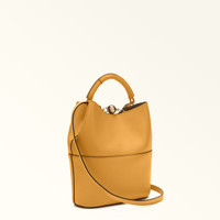 The perfect everyday bucket bag, Furla Sfera is compact yet spacious. Made of a soft suede fabric with a denim finish, it is light to carry and fully lined. The brand's iconic Sfera hardware embellishes the handle with a distinctive twist. - Adjustable, detachable strap in matching leather - Magnetic closure - Furla logo print on the front Details Material: Napoli Double Calf Leather Strap information: Removable/adjustable leather strap Closure: Magnet Closure Product Code: WB01679BX316910074089S Internal Composition: 80% Leather 10% Nylon 10% Polyurethane External Composition: 100% Leather Plating: Gold Dimensions in INCH x x (w x h x d)
