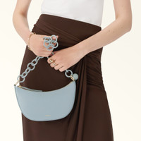 With a flawless contemporary allure, the Furla Sfera crossbody has a rounded half-moon design. Made entirely from textured leather, it features a detachable resin chain strap with an iconic Sfera pendant. Its compact saddle-inspired shape is completed by a convenient top zip closure. - Three inner card slots - Furla logo punched on the front Details Interior Details: 3 Cc Slots Exterior Details: Furla Punched Logo/Leather Zip Puller Material: Textured Leather + Resin Chain Product Code: WE00767BX398990013963S Internal Composition: 90% Polyester 10% Leather External Composition: 80% Leather 20% Abs Plating: Matching+Light Gold Dimensions in INCH 6,3 x 4,72 x 1,57 (w x h x d)