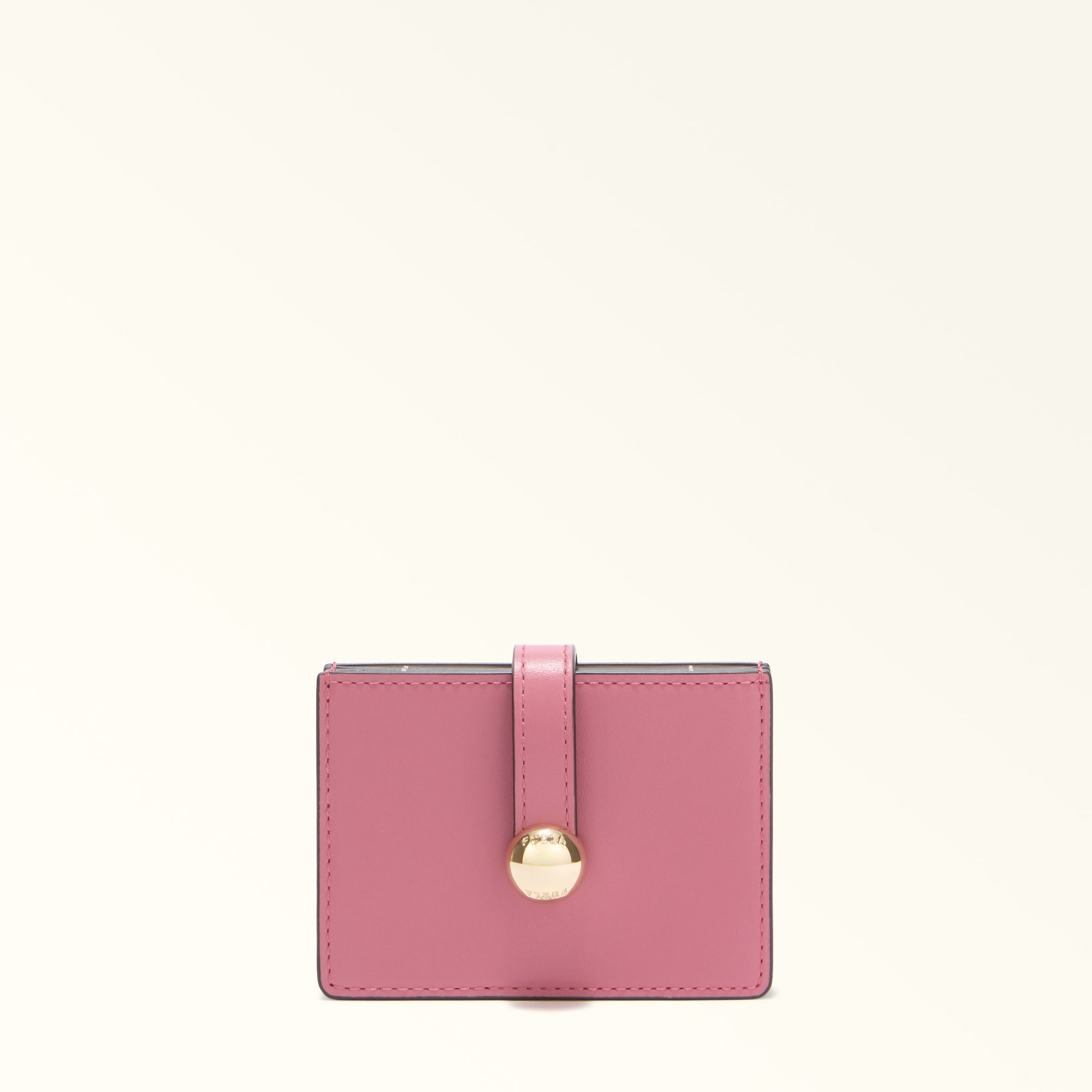 The Furla Sfera card holder offers pocket-sized versatility. Its soft leather design features a tab and press stud, embellished with the iconic Sfera logo. Complete with a practical gusseted interior, it makes the perfect accessory for slipping into your bag and staying organised. - Five inner credit card slots Details Material: Soft Calf Leather Product Code: WP00549AX073310074344S Internal Composition: 100% Ovis Aries Leather External Composition: 100% Leather Plating: Gold Dimensions in INCH 4,33 x 3,15 x 0,79 (w x h x d)