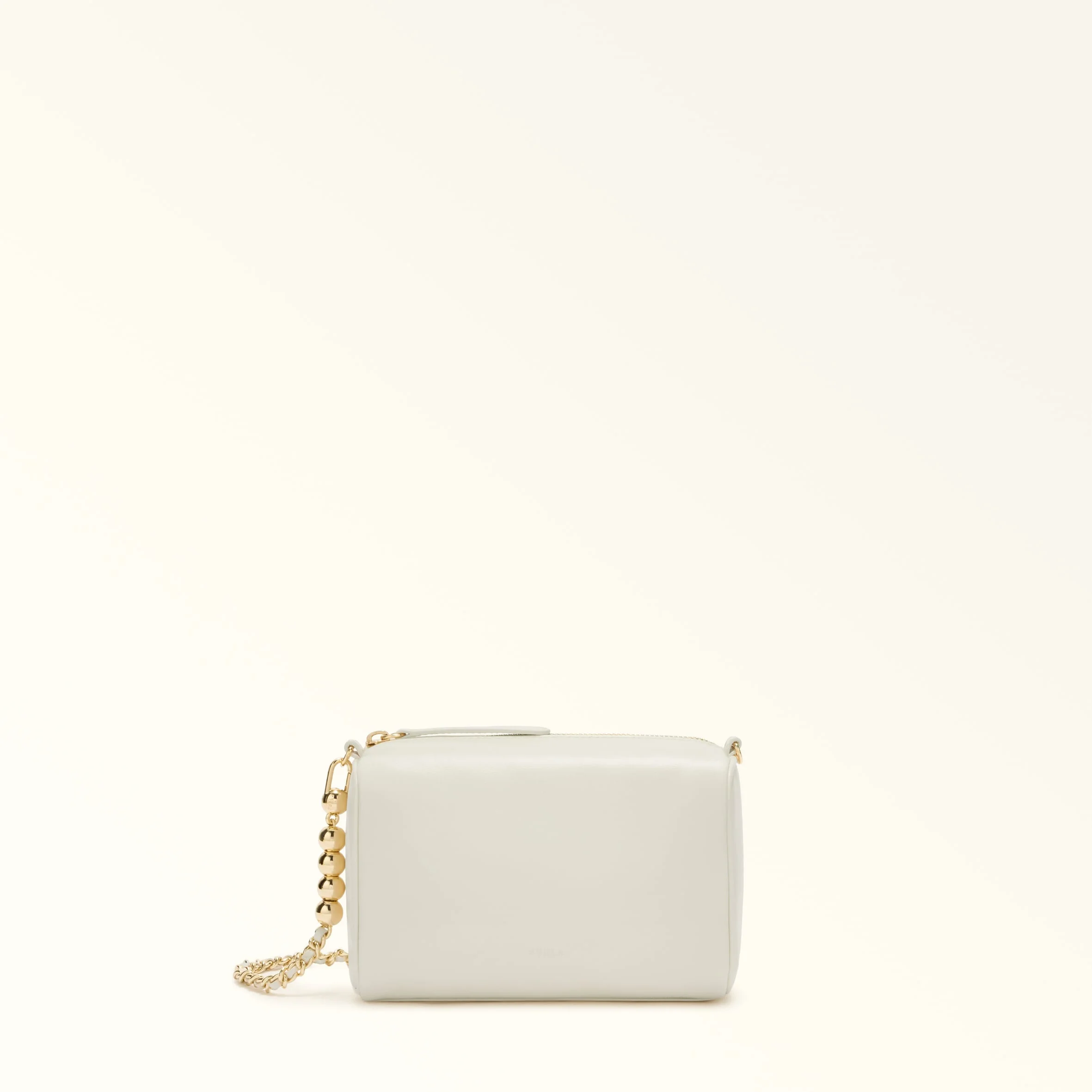 A spare-time staple with a Boston silhouette, the Furla Talia mini crossbody comes in buttery soft nappa leather. Its detachable chain strap is interwoven with leather details and embellished with Sfera elements, becoming an elegant belt when styled around the waist on its own. - Three inner card slots - Zip fastening - Embossed Furla logo Details Interior Details: 3 Cc Slots Exterior Details: Furla Punched Logo/Leather Zip Puller Material: Nappa Leather Strap Length Max: 37.8 in Strap Length Min: 32.68 in Product Code: WE00793BX22691007PNN00 Internal Composition: 90% Polyester 10% Leather External Composition: 100% Ovis Aries Leather Plating: Gold Dimensions in INCH 7,48 x 4,53 x 3,94 (w x h x d)