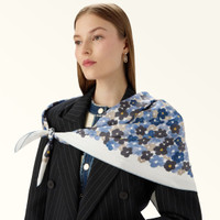 The square Furla Tortona scarf in light silk twill lends any look original style, the bold palette of its floral macro pattern bringing a splash of colour. Soft, ethereal and enveloping, it's perfect for wrapping around your neck or shoulders for a touch of contemporary sophistication. - Measures 90 x 90 cm Details Material: Macroflower Print Silk Twill Product Code: WT00021BX422644014314S Plating: Basic Model Dimensions in INCH 35,43 x 35,43 (w x h)