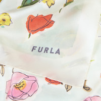 Styled on your wrist, head or favourite bag, the Furla Tortona square scarf lends a special touch to any look. Made from lightweight silk twill, it's embellished with a spring-evoking flower-meadow print. - Size: 90 x 90 cm Details Material: Prato Fiorito Print Silk Twill Product Code: WT00021BX38534401TRU00 External Composition: 100% Silk Plating: Basic Model Dimensions in INCH 35,43 x 35,43 (w x h)