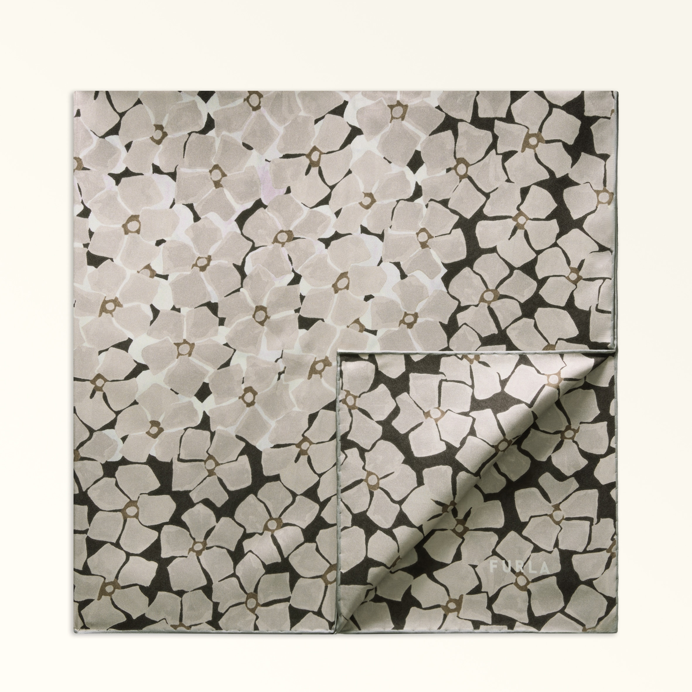 This square Furla Tortona scarf is decorated with a floral majolica pattern. Made of light silk twill, it works beautifully worn on your wrist, tied around your head or embellishing your favourite bag. An elegant accessory for infusing any look with distinctive style. - Measures 90 x 90 cm Details Material: Tile Flower Print Silk Twill Product Code: WT00021BX42254401TOV00 Plating: Basic Model Dimensions in INCH 35,43 x 35,43 (w x h)