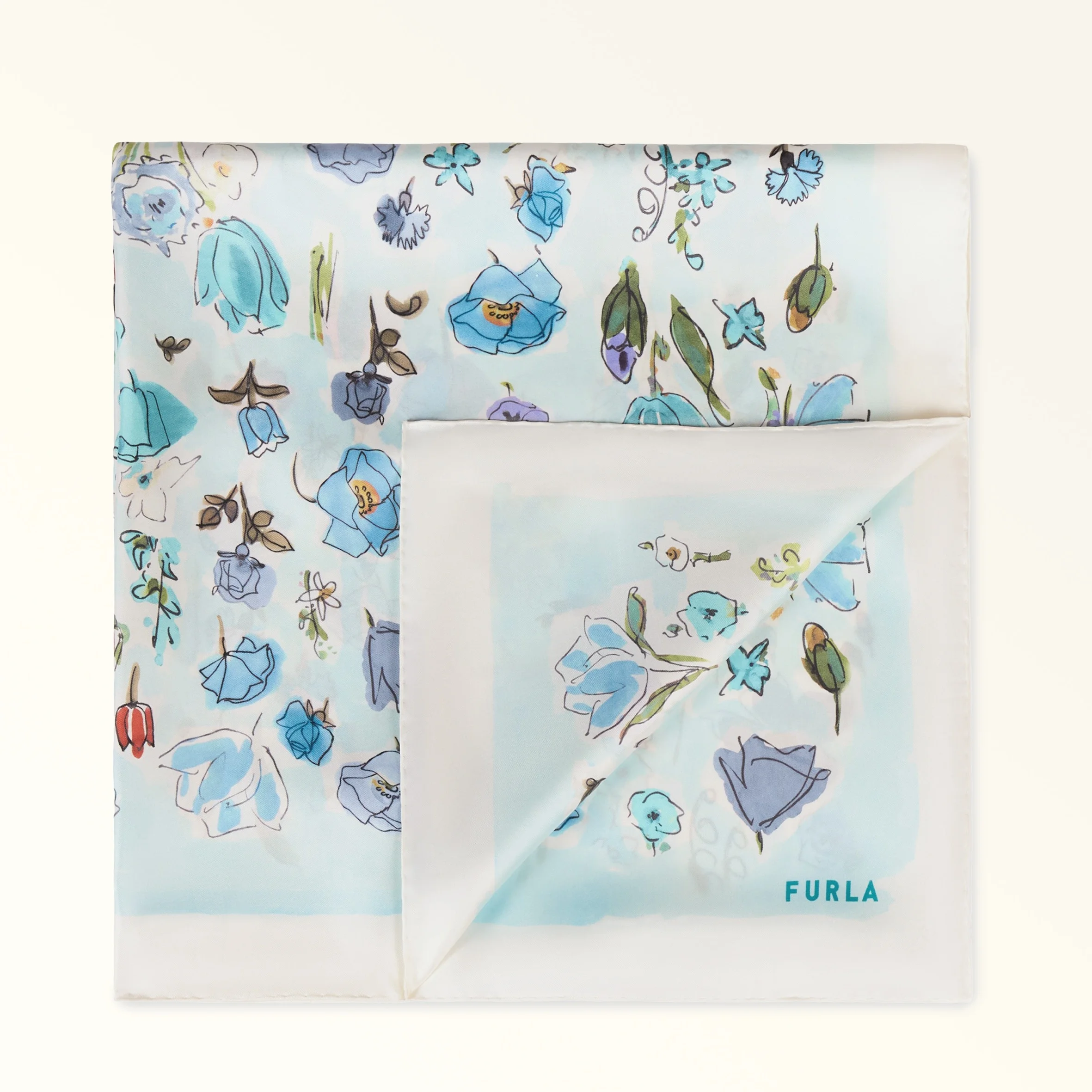 Styled on your wrist, head or favourite bag, the Furla Tortona square scarf lends a special touch to any look. Made from lightweight silk twill, it's embellished with a spring-evoking flower-meadow print. - Size: 90 x 90 cm Details Material: Prato Fiorito Print Silk Twill Product Code: WT00021BX38534401TA600 External Composition: 100% Silk Plating: Basic Model Dimensions in INCH 35,43 x 35,43 (w x h)