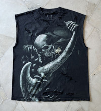 OG ABEL SKULLS THRASHED TOP TANK SHIRT PLEASE READ AND SEE ALL PHOTO PROVIDED ! SIZE : ON TAG XL ARMPIT TO ARMPIT : 23.4” LENGTH : 28.3” CONDITION : 5/10 ( THRASHED , FADED , DISTRESSED !! ) BUY WITH ME IN BULK TO GET LOWER PRICES AND FREE SHIPPING !! SHIPPING BY DHL EXPRESS @ FEDEX NO RETURN OR REFUND !
